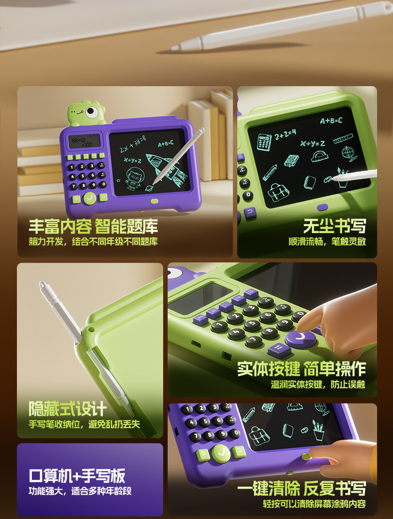 지능형 구강 컴퓨터 어린이는 드로잉 보드 자동 문제 해결 수학 LCD 쓰기 보드 드로잉 보드 아기 장난감을 제거 할 수 있습니다.