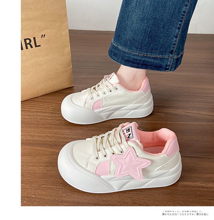 니치 스타 스니커즈 여성용 Ins 트렌디 2025 봄 새로운 두꺼운 밑창 높은 흰색 신발 라운드 토 레이스 업 브레드 슈즈스토어 가기