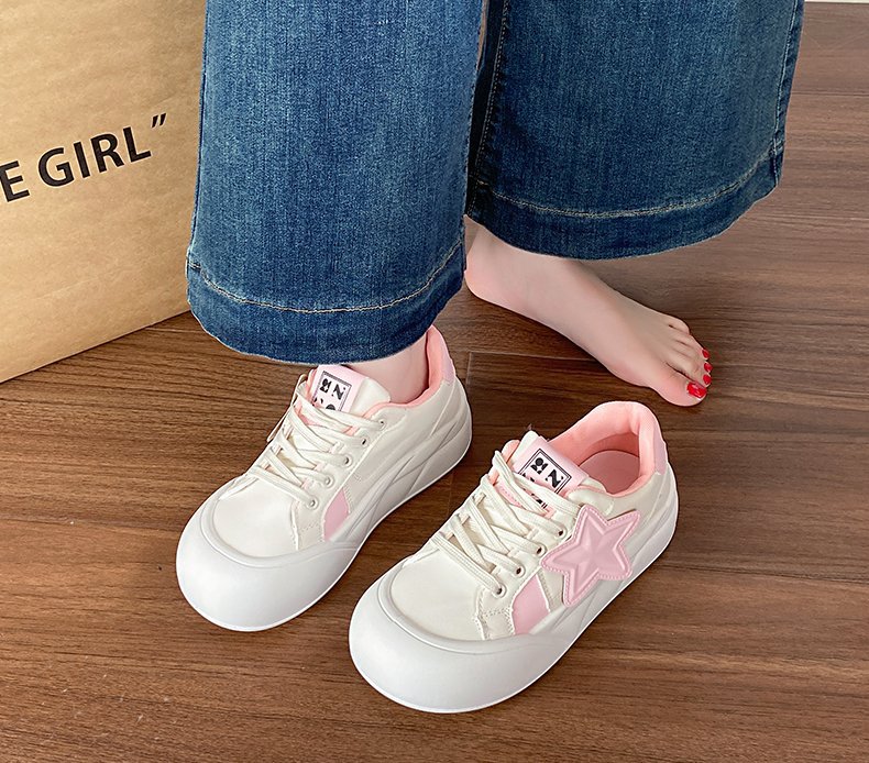 니치 스타 스니커즈 여성용 Ins 트렌디 2025 봄 새로운 두꺼운 밑창 높은 흰색 신발 라운드 토 레이스 업 브레드 슈즈