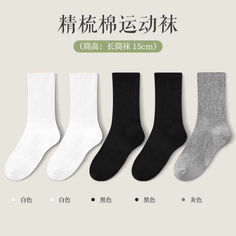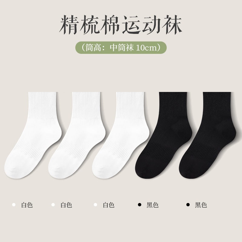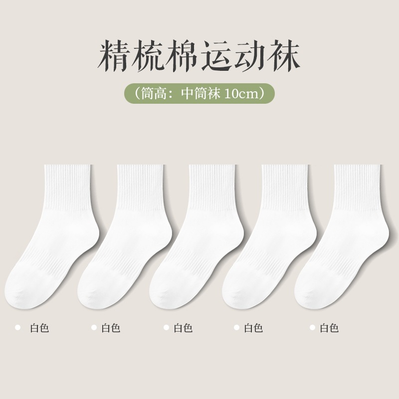 면 양말 남성 중간 배럴 여름 정품 단색 짧은 흰색 양말 남성 스포츠 스타킹 통기성 항균 탈취제