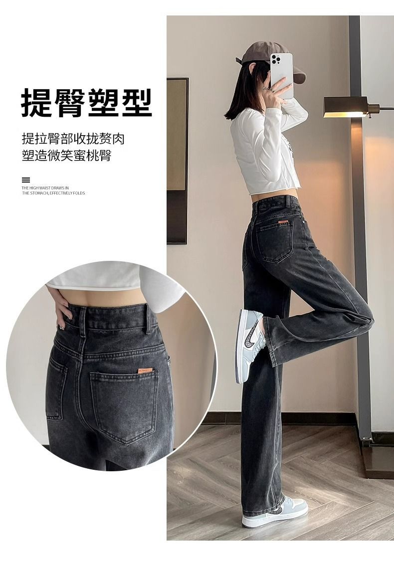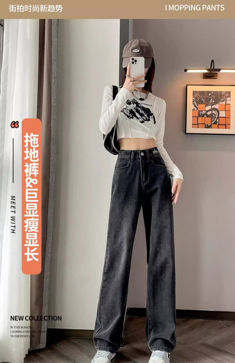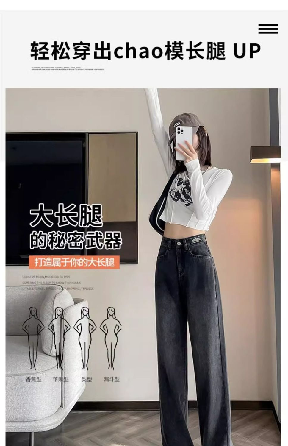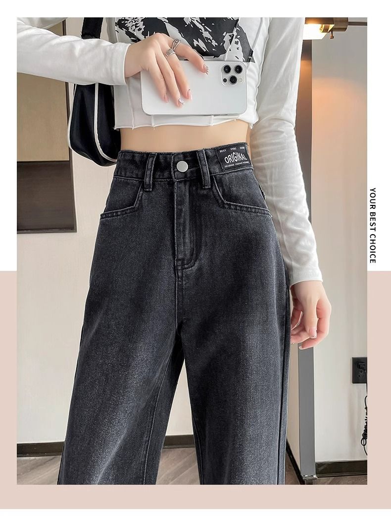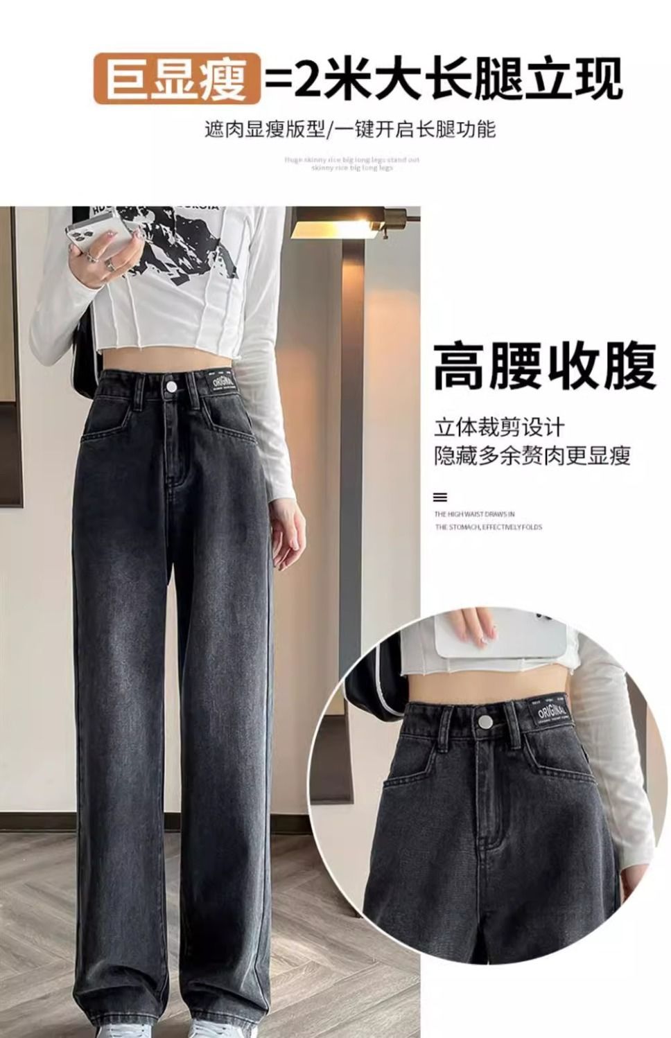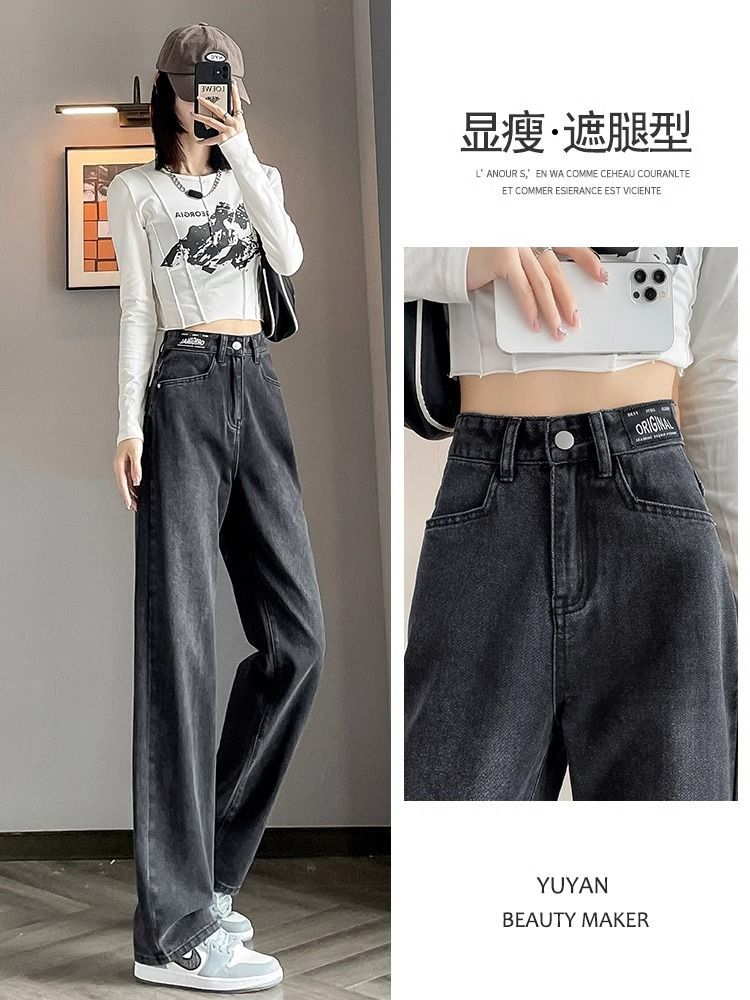 블랙 그레이 와이드 레그 청바지 여성용 스트레이트 느슨한 봄과 가을 새로운 레트로 하이 웨이스트 딥 롱 바지스토어 가기