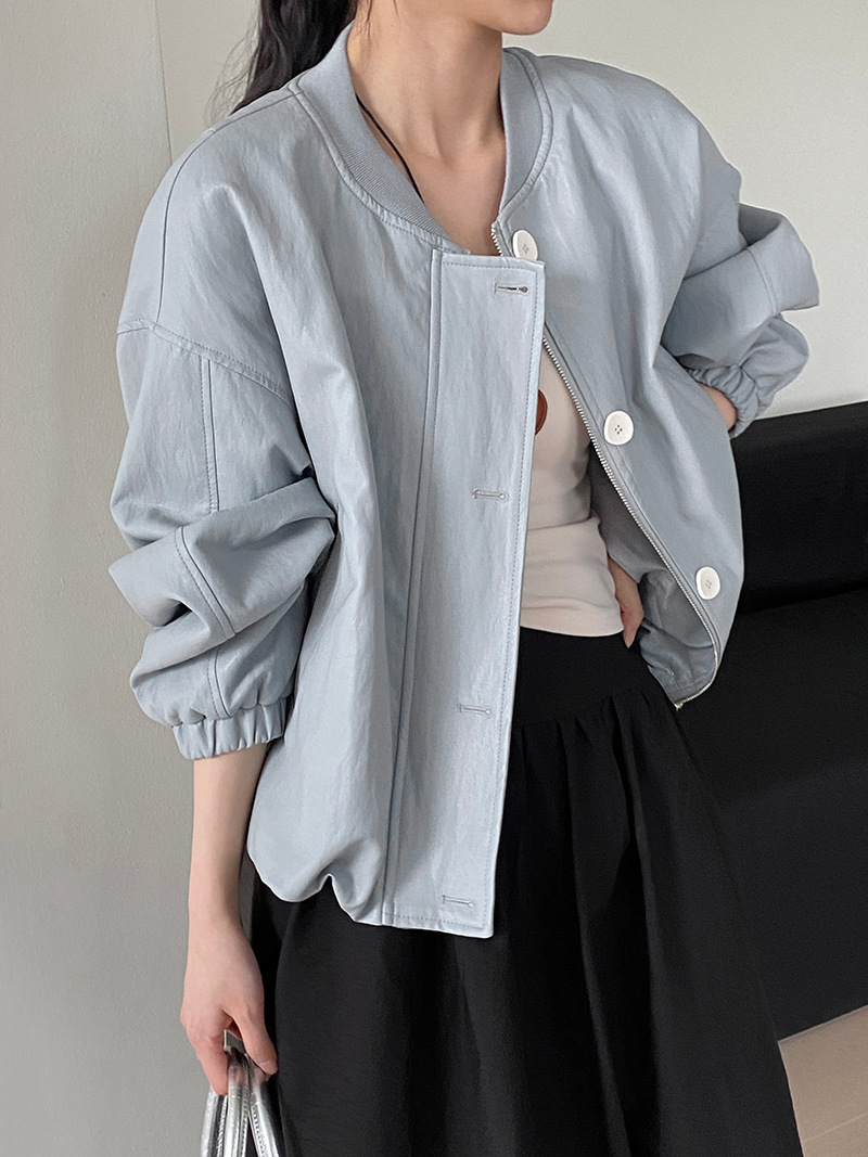 봄과 가을 한국 스타일 스탠드 칼라 가죽 자켓 여성 복고풍 캐주얼 단순 솔리드 컬러 자켓 짧은 탑 2523