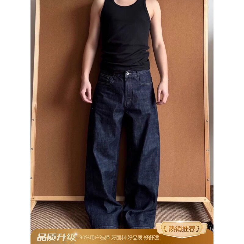 아메리칸 스타일 레트로 타닌 블루 A-캐릭터 청바지 남성 가을과 겨울 클린 핏 바지 오리지널 소 스트레이트 루즈 와이드 레그 팬츠스토어 가기