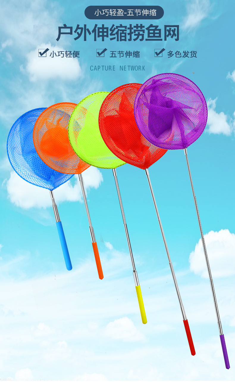 스테인레스 스틸 망원경 낚시 그물 어린이 낚시 그물 포켓 작은 복사 그물 곤충 낚시 그물 새우 낚시 그물 어린이 야외 장난감스토어 가기