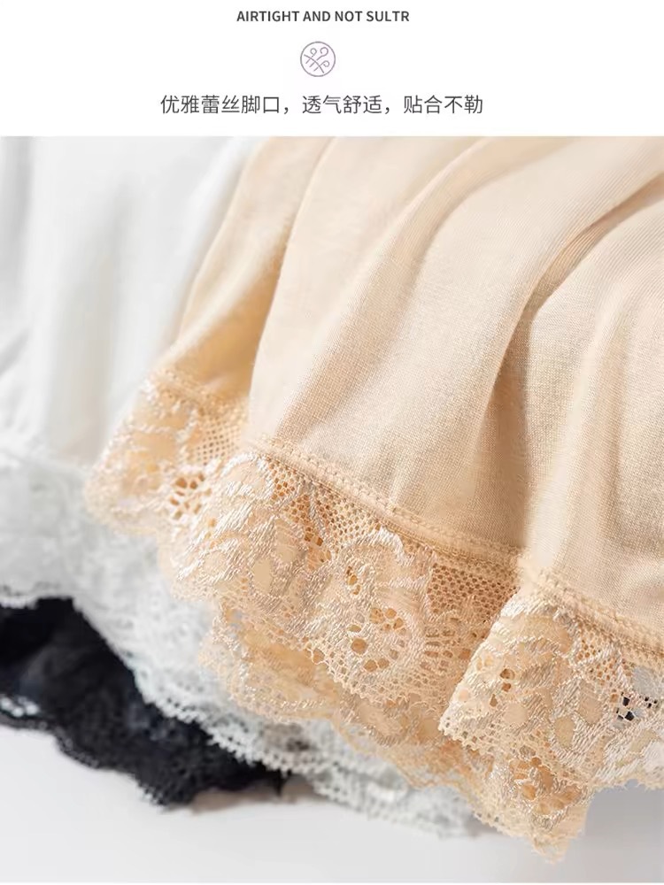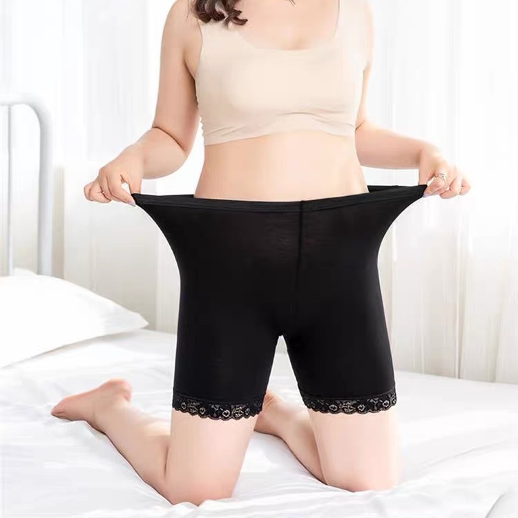 여름 새로운 레이스 레이스 안전 바지 아이스 실크 추적없는 중간 허리 기지 안티 러닝 안전 바지 여성 공장 아울렛