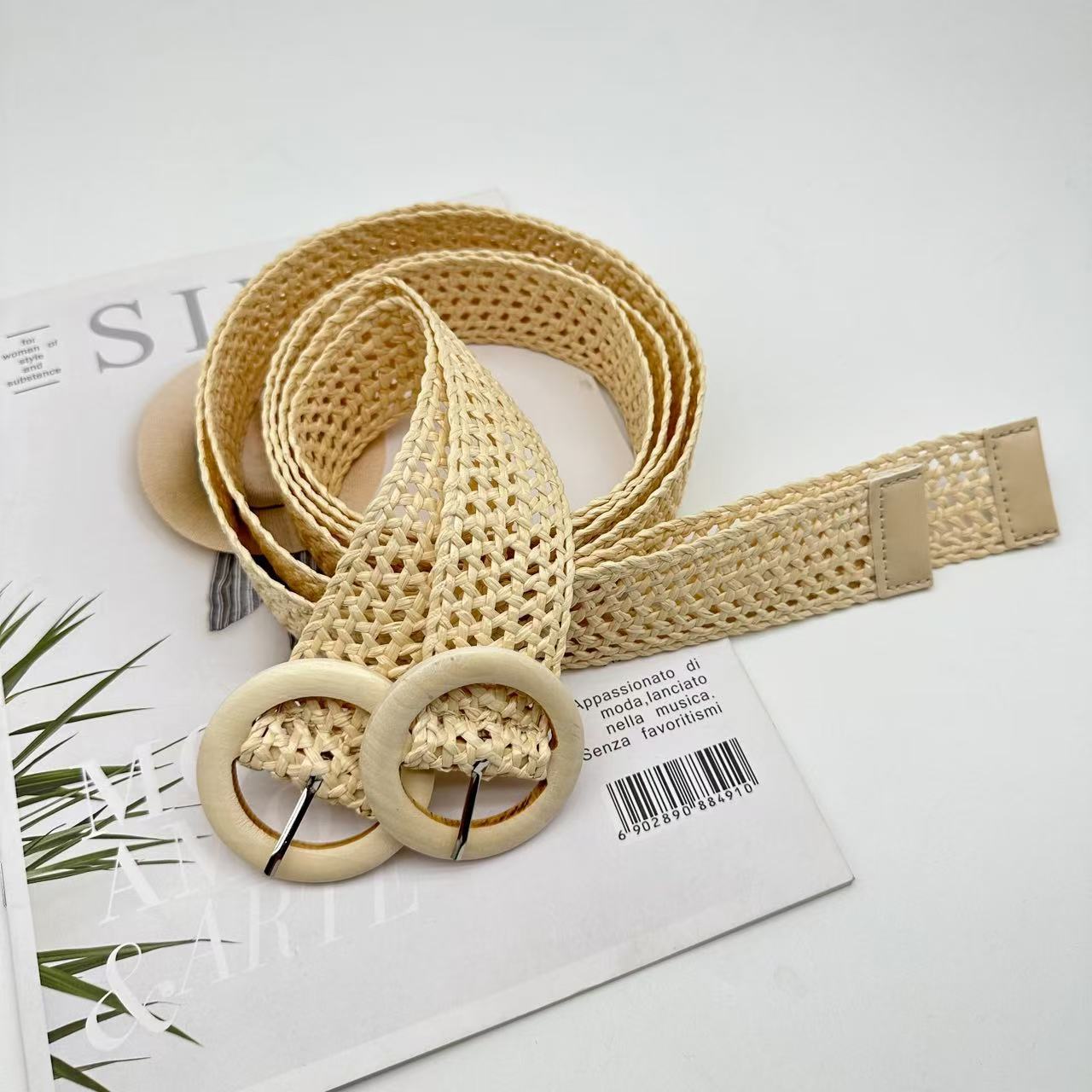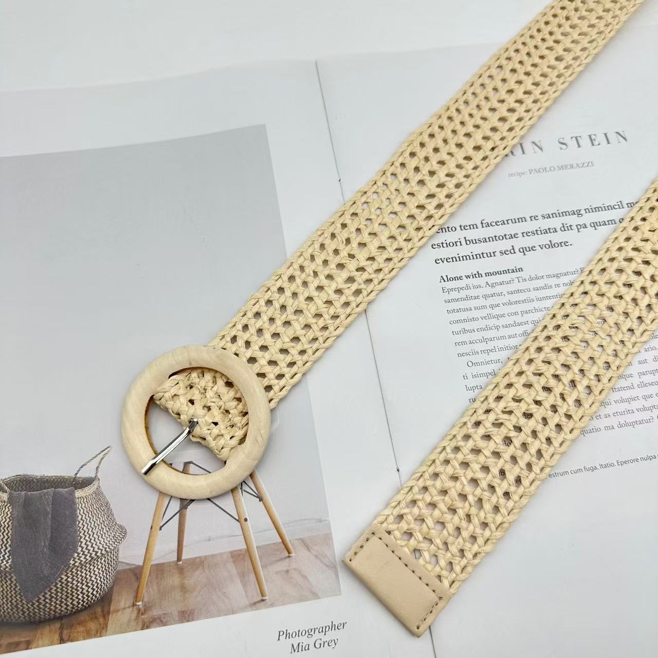 새로운 도착 나무 라운드 버클 메시 코튼 나병 꼰 벨트 여성용 살구색 밀짚 레트로 원피스 긴 셔츠 장식 벨트스토어 가기