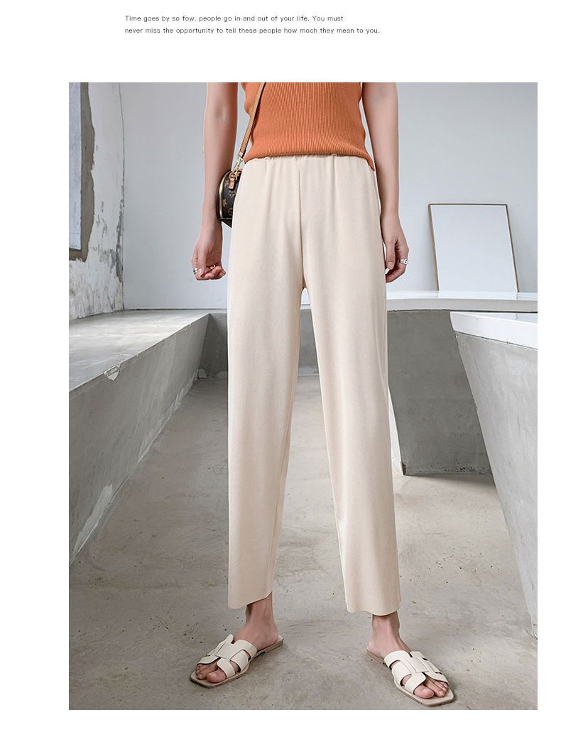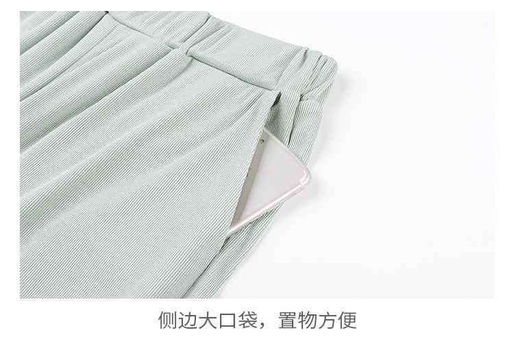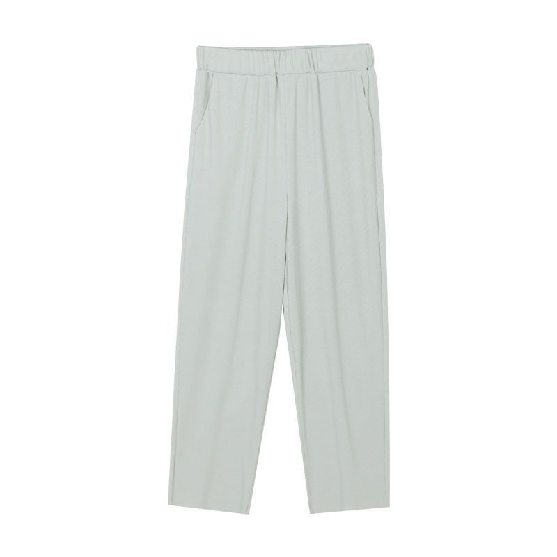 스트레이트 다리 바지 여성용 봄과 여름 캐주얼 새로운 얇은 자른 얼음 실크 드레이피 넓은 다리 할머니 자른 무 바지