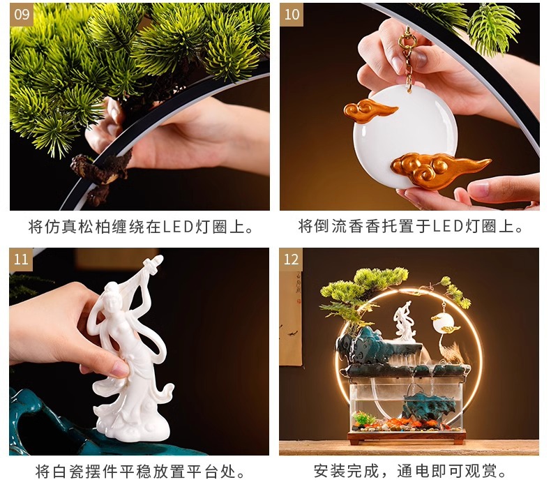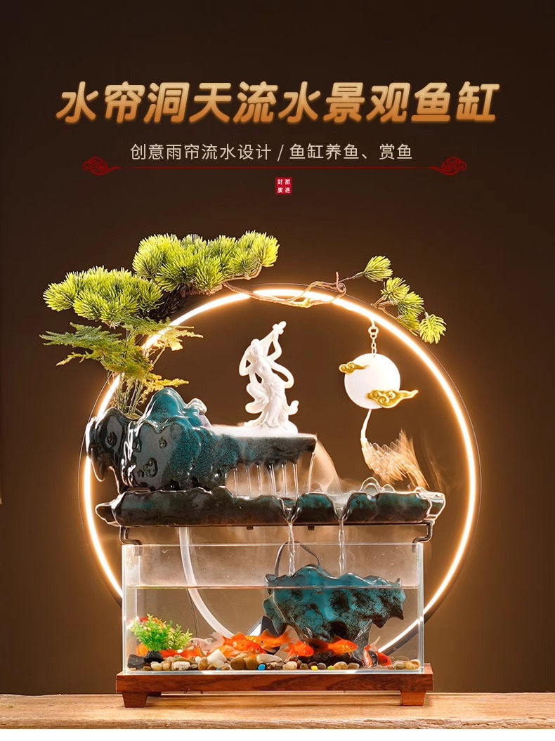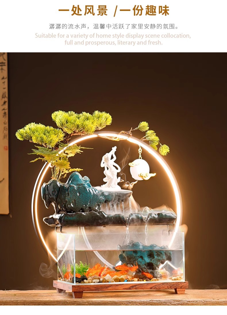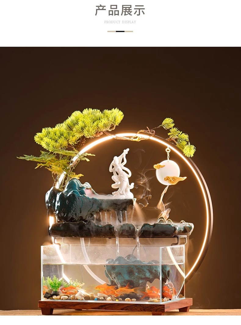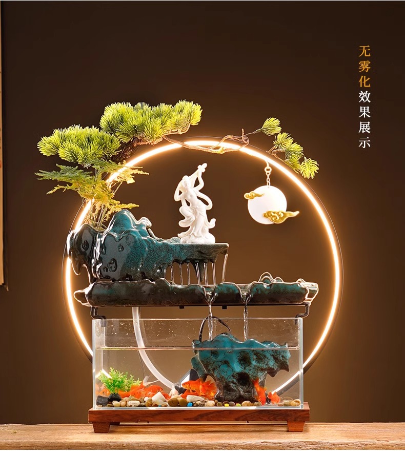 루킹 장식품 흐르는 물 물고기 탱크 홈 거실 데스크탑 장식 D 제품 물 순환 분수 풍경 집들이 개회식스토어 가기