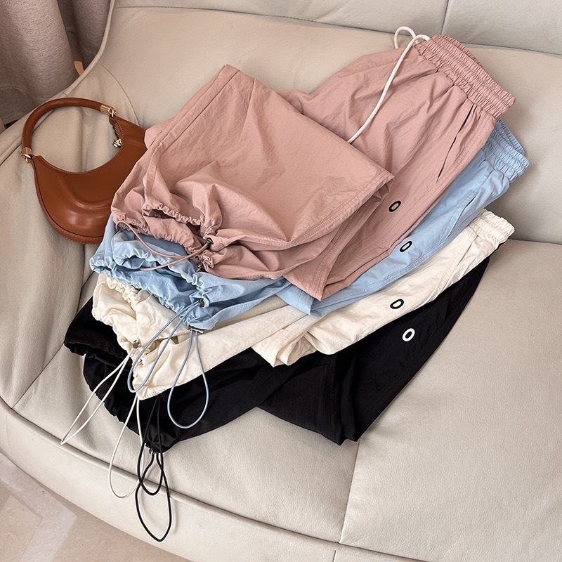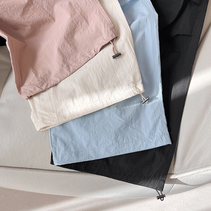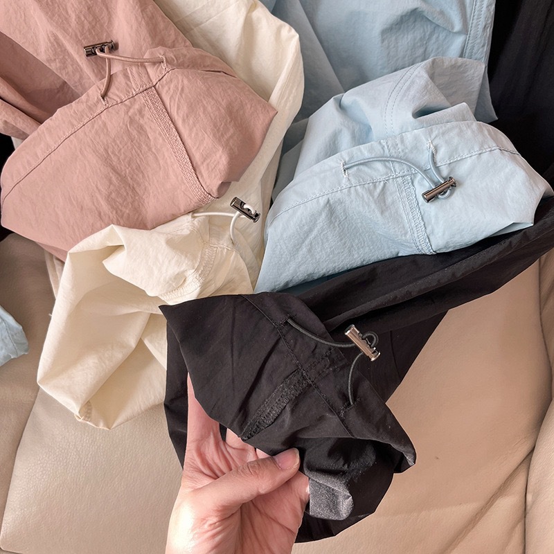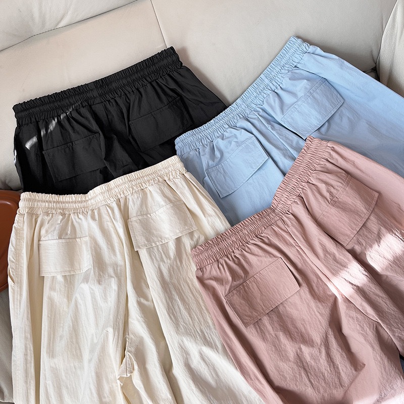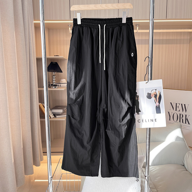 대외 무역 여성의 얇은 빠른 건조 낙하산 바지 3 차원 주름 높은 허리 느슨한 넓은 다리 바지 스트레이트 캐주얼 바지 등산 바지