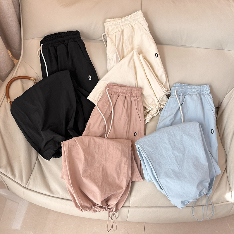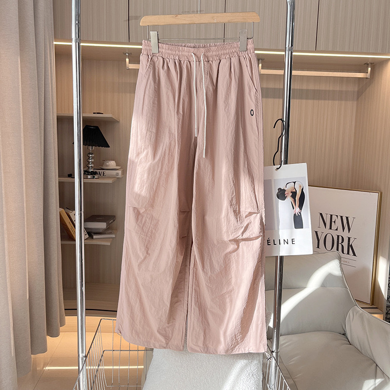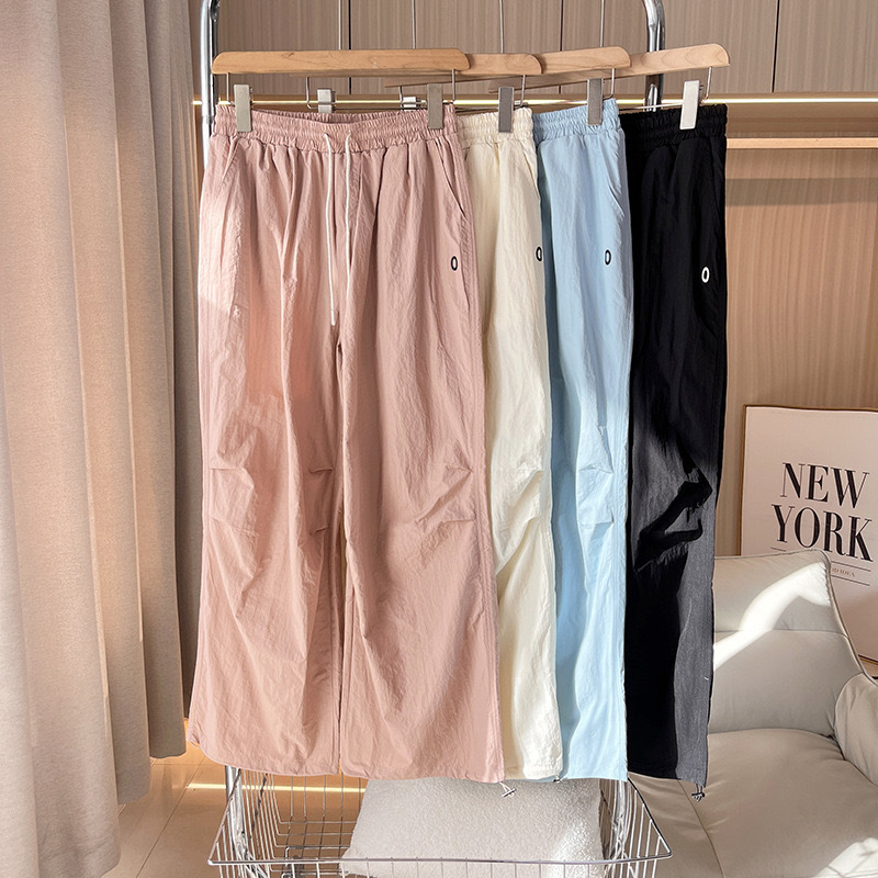 대외 무역 여성의 얇은 빠른 건조 낙하산 바지 3 차원 주름 높은 허리 느슨한 넓은 다리 바지 스트레이트 캐주얼 바지 등산 바지스토어 가기