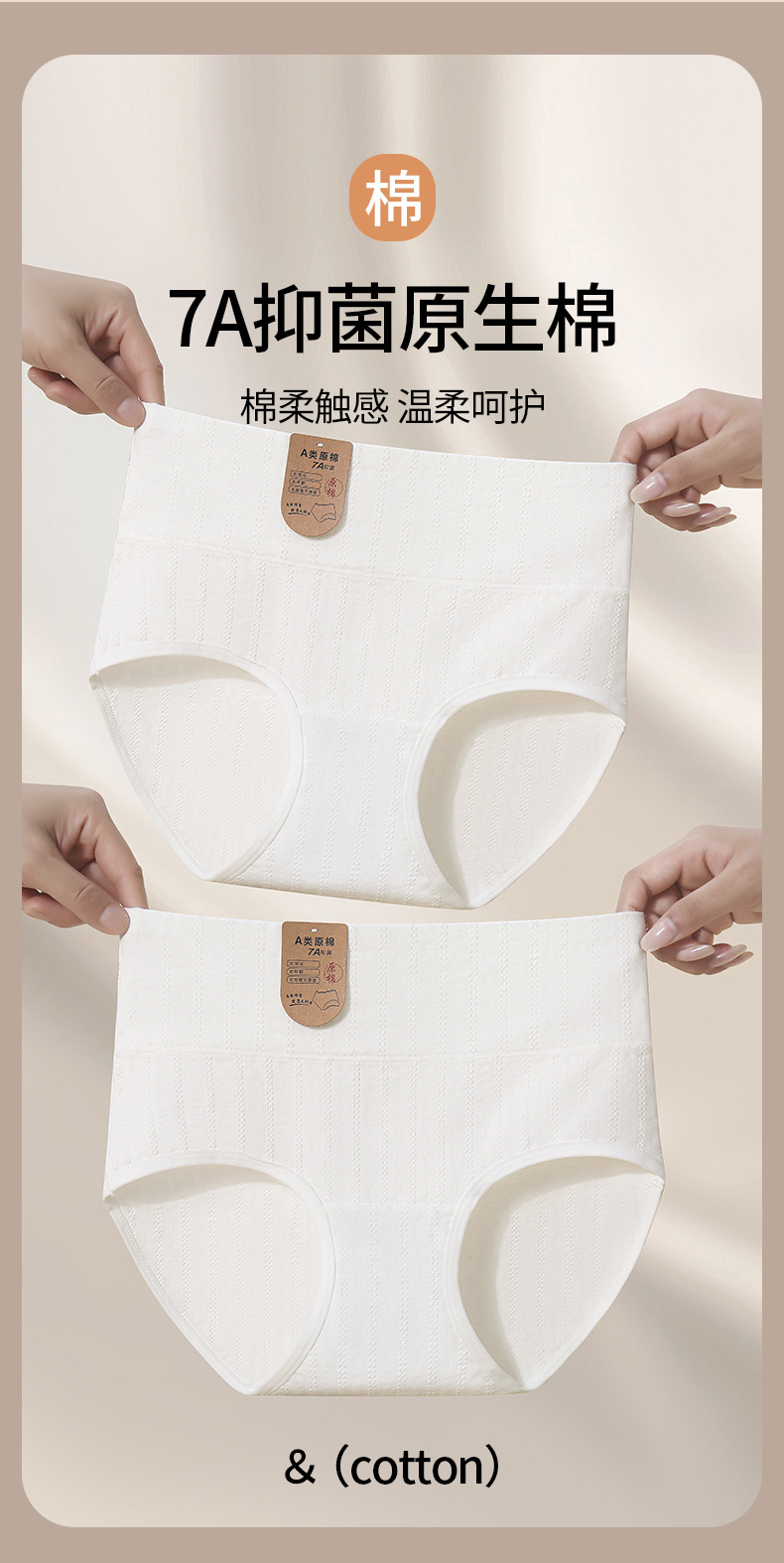 무염색 면 하이웨이스트 복부 조절 7A 여성용 속옷 순면 항균 밑단 편안하고 통기성 좋은 여성용 속옷