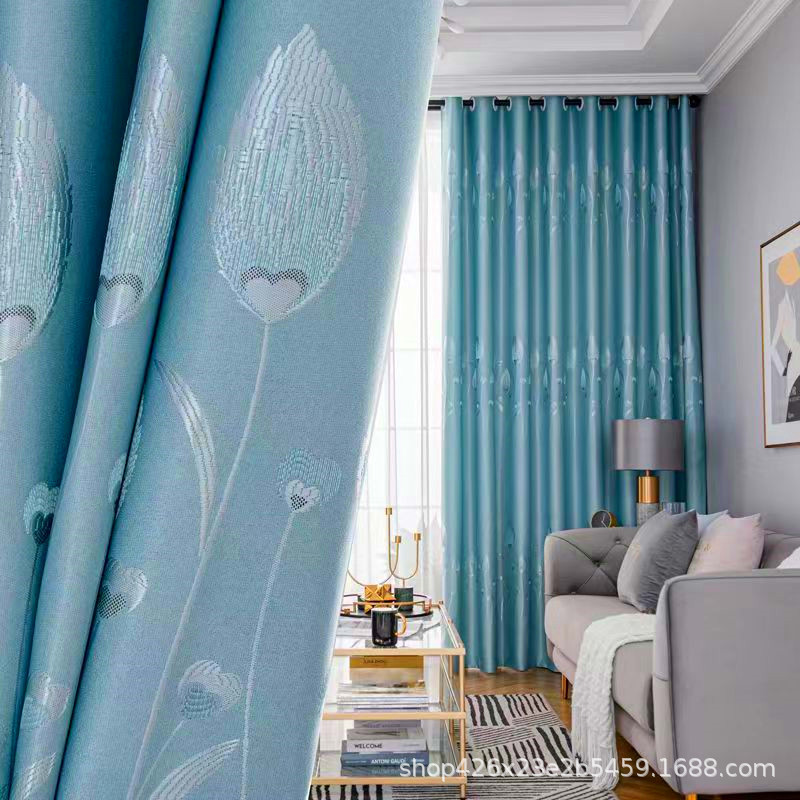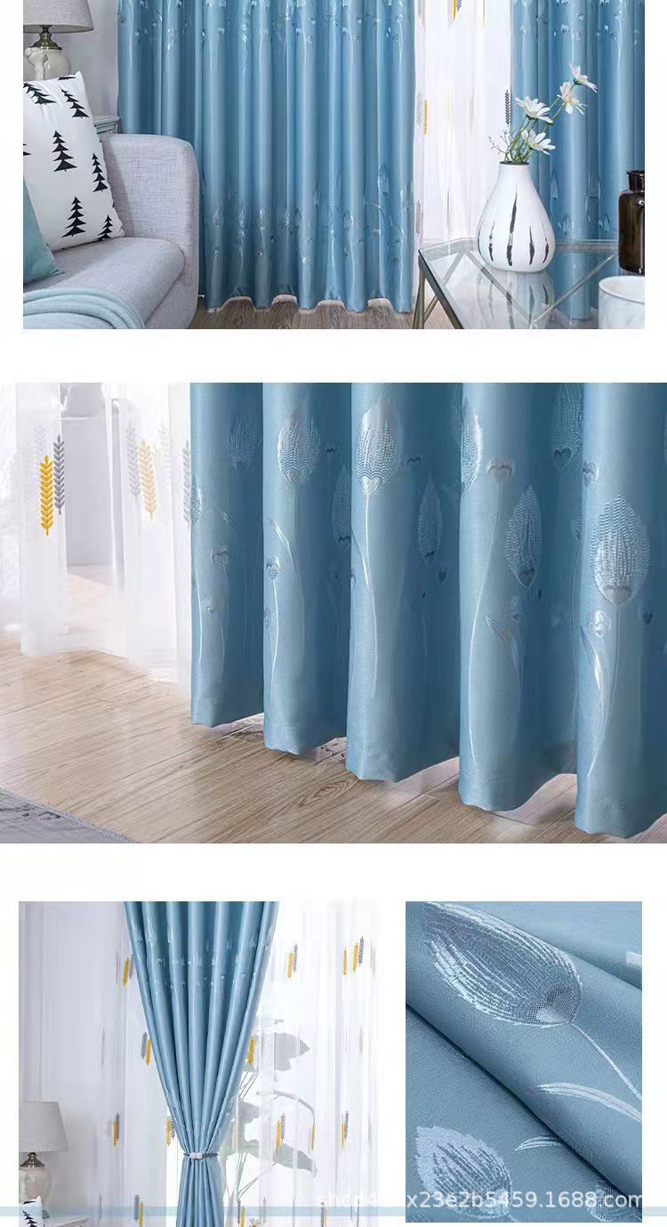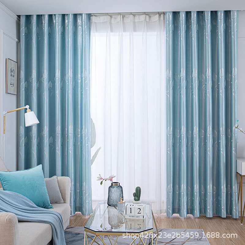 새로운 정전 커튼 완성 침실 거실 바닥부터 천장까지 창 발코니 베이 창 자외선 차단제 간단한 커튼 도매