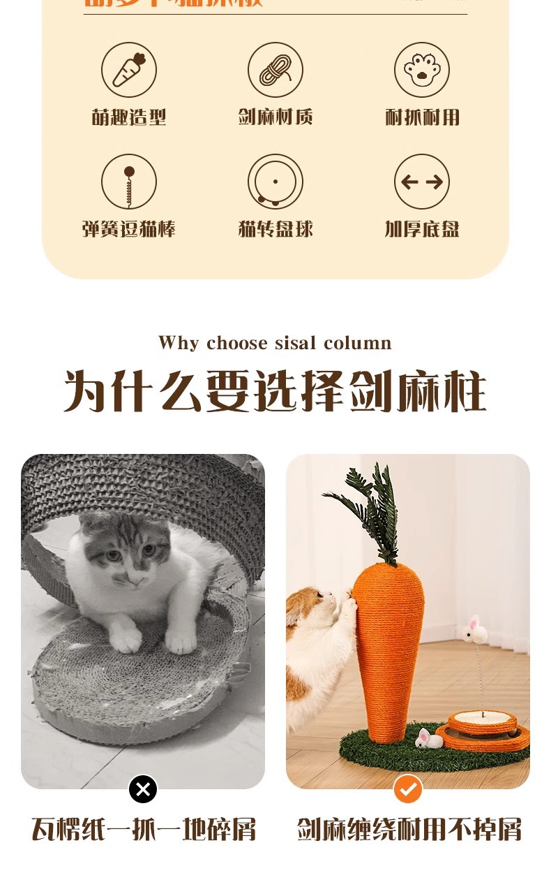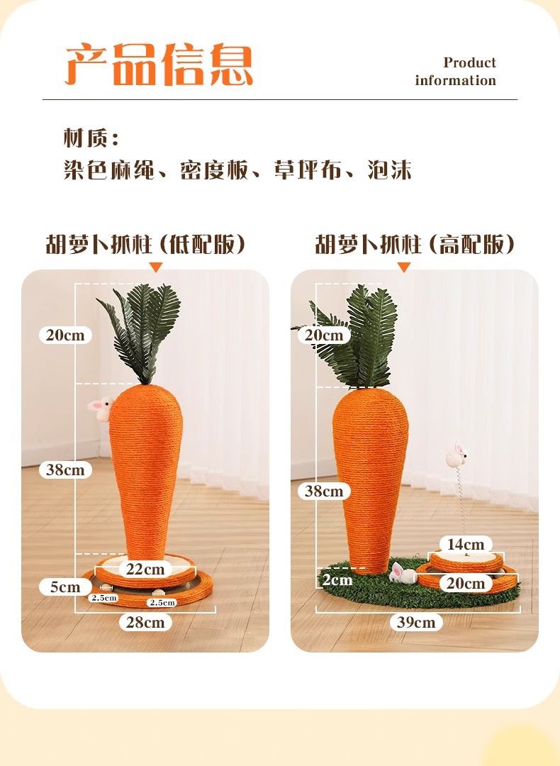 고양이 등반 랙 당근 고양이 긁는 보드 사이 잘 밧줄 고양이 긁기 열 수직 스크래치 저항하는 당근 고양이 발톱 그라인더 장난감스토어 가기