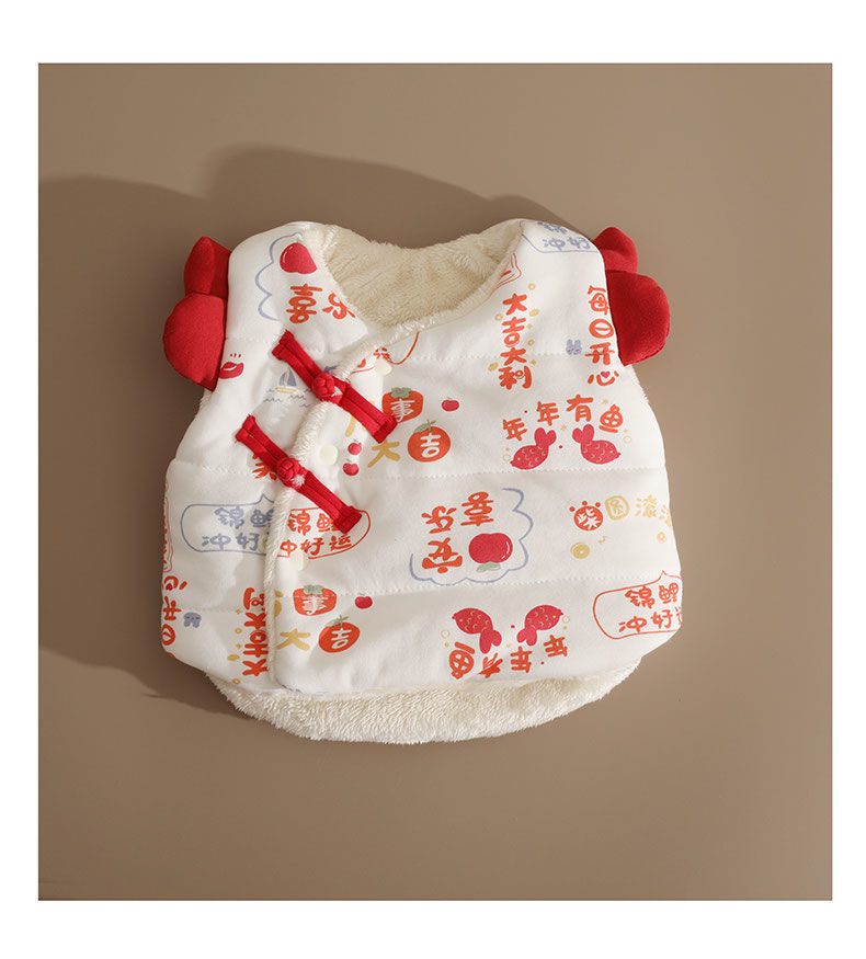 아기 조끼 가을, 겨울 두꺼운 아기 겉옷 퀼트 플러스 벨벳 따뜻한 빨간색 조끼 새해 옷 어린이 조랑말 조끼