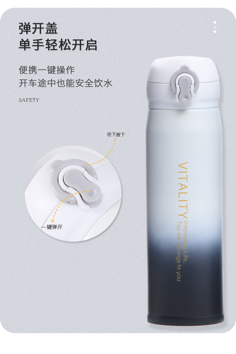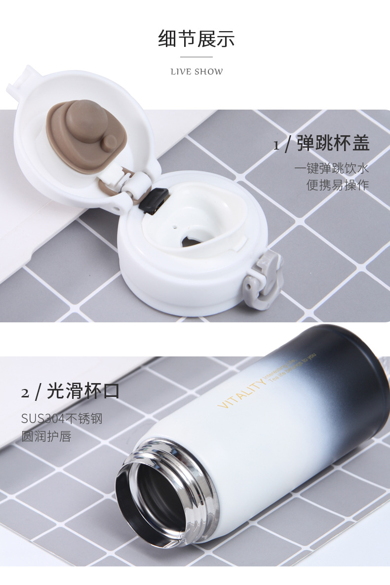 새로운 304 스테인레스 스틸 진공 보온병 컵 그라디언트 학생 바운스 컵 선물 컵 컵 레터링 로고스토어 가기