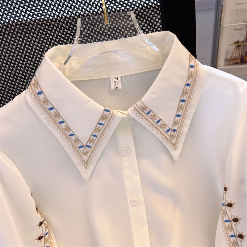 민족 자수 긴 소매 전문 여성 셔츠 봄과 가을 새로운 자수 디자인 센스 루즈 셔츠 프렌치 탑