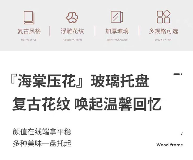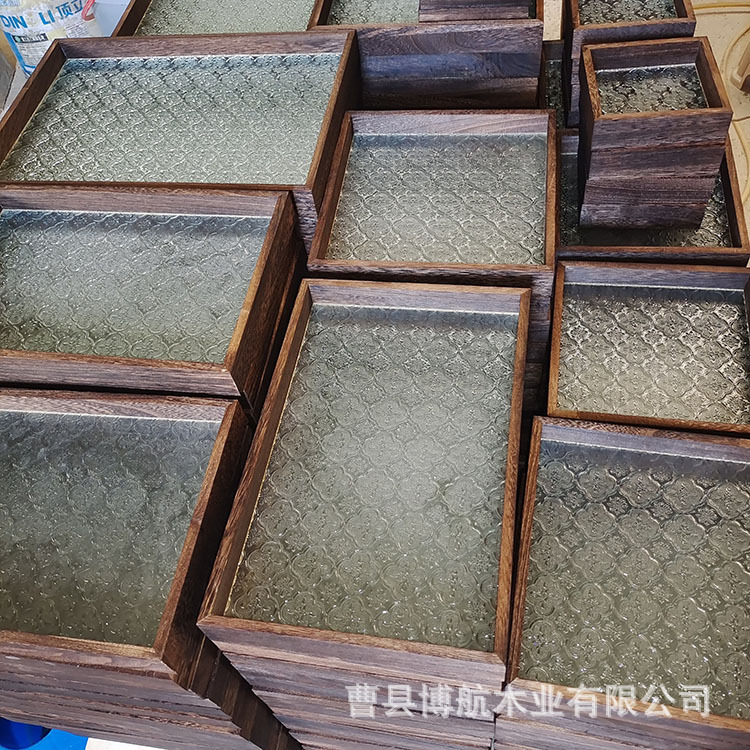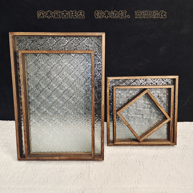 나무 트레이 레트로 벚꽃무늬 유리 건조차 트레이 가정용 찻잔 보관 직사각형 원목 레트로스토어 가기