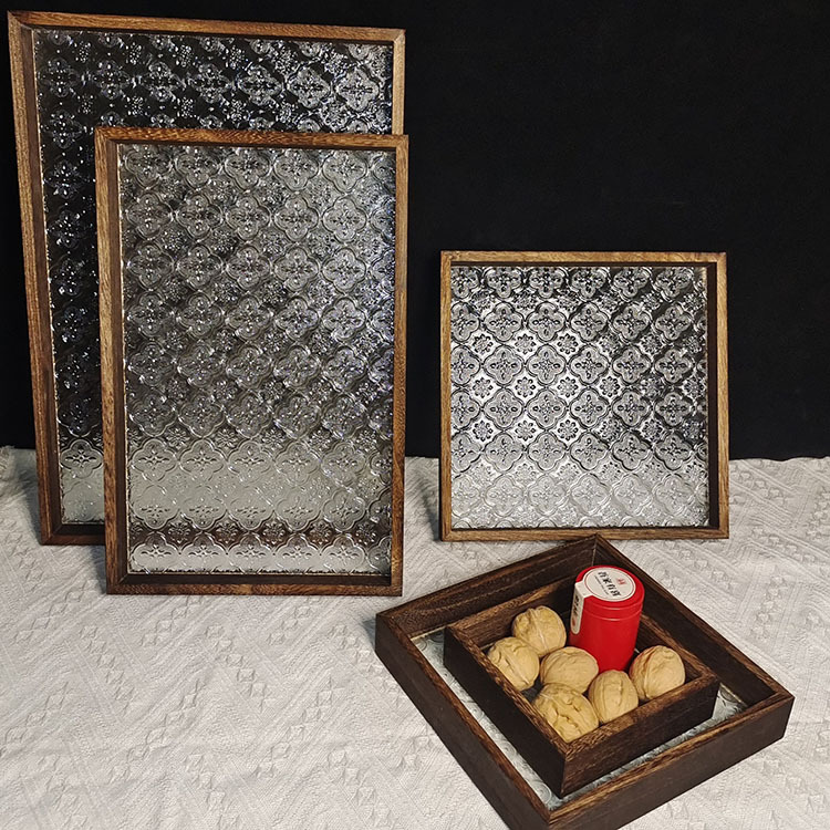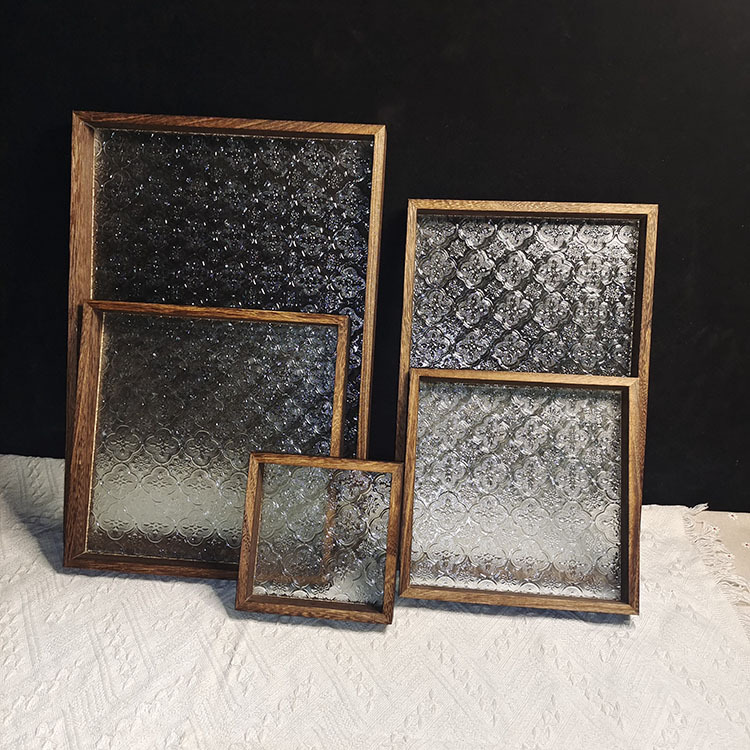 나무 트레이 레트로 벚꽃무늬 유리 건조차 트레이 가정용 찻잔 보관 직사각형 원목 레트로