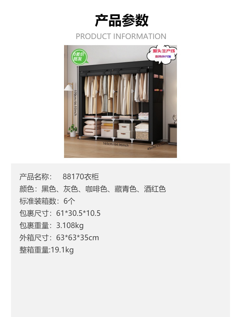 간편 조립 옷장, 임대 주택용 가정용 옷장, 빨래 건조대, 바닥형 침실용, 경제적인 신형, 공장 도매