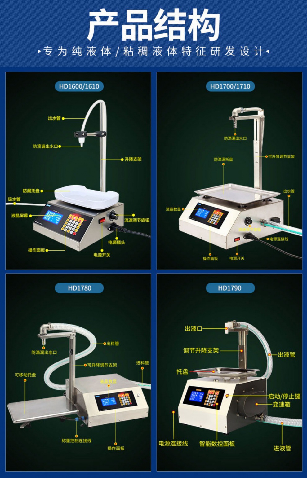 액체 충전 기계 점성 세탁 액체 식용 오일 주류 꿀 작은 정량 자동 대형 흐름 충전 기계
