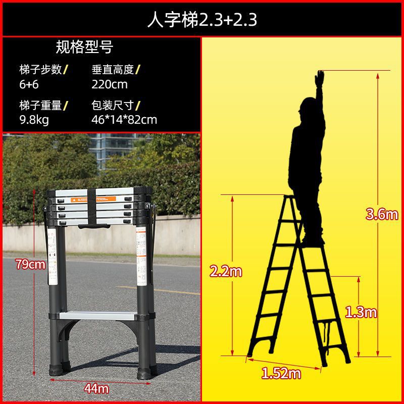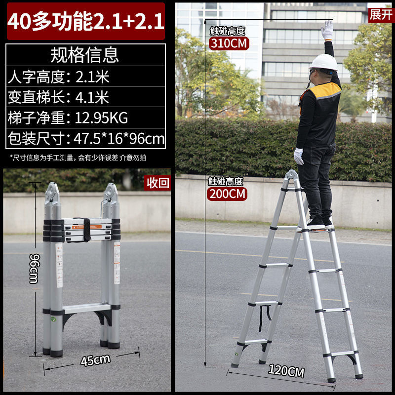 사다리 홈 접는 다기능 두꺼운 알루미늄 합금 텔레스코픽 사다리 헤링본 사다리 리프팅 엔지니어링 사다리 작은 무료 배송