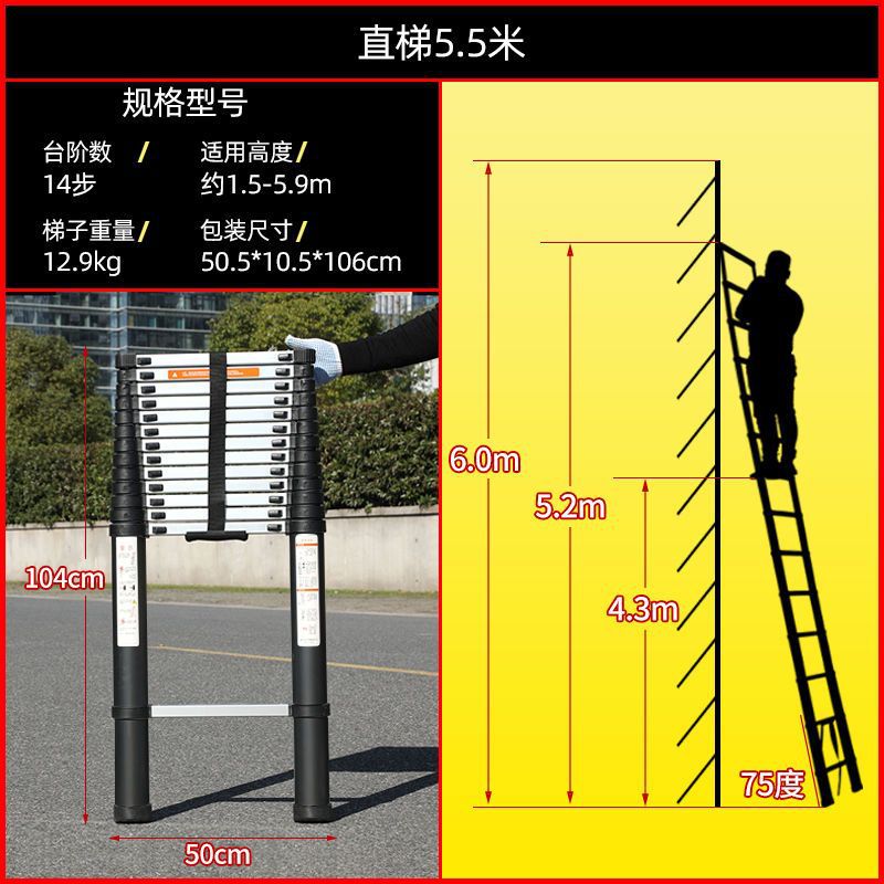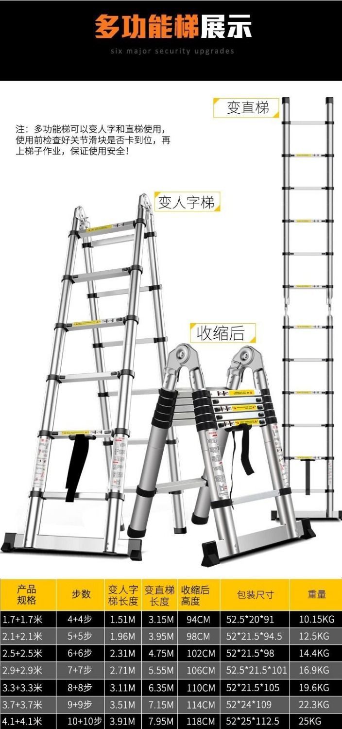 사다리 홈 접는 다기능 두꺼운 알루미늄 합금 텔레스코픽 사다리 헤링본 사다리 리프팅 엔지니어링 사다리 작은 무료 배송스토어 가기