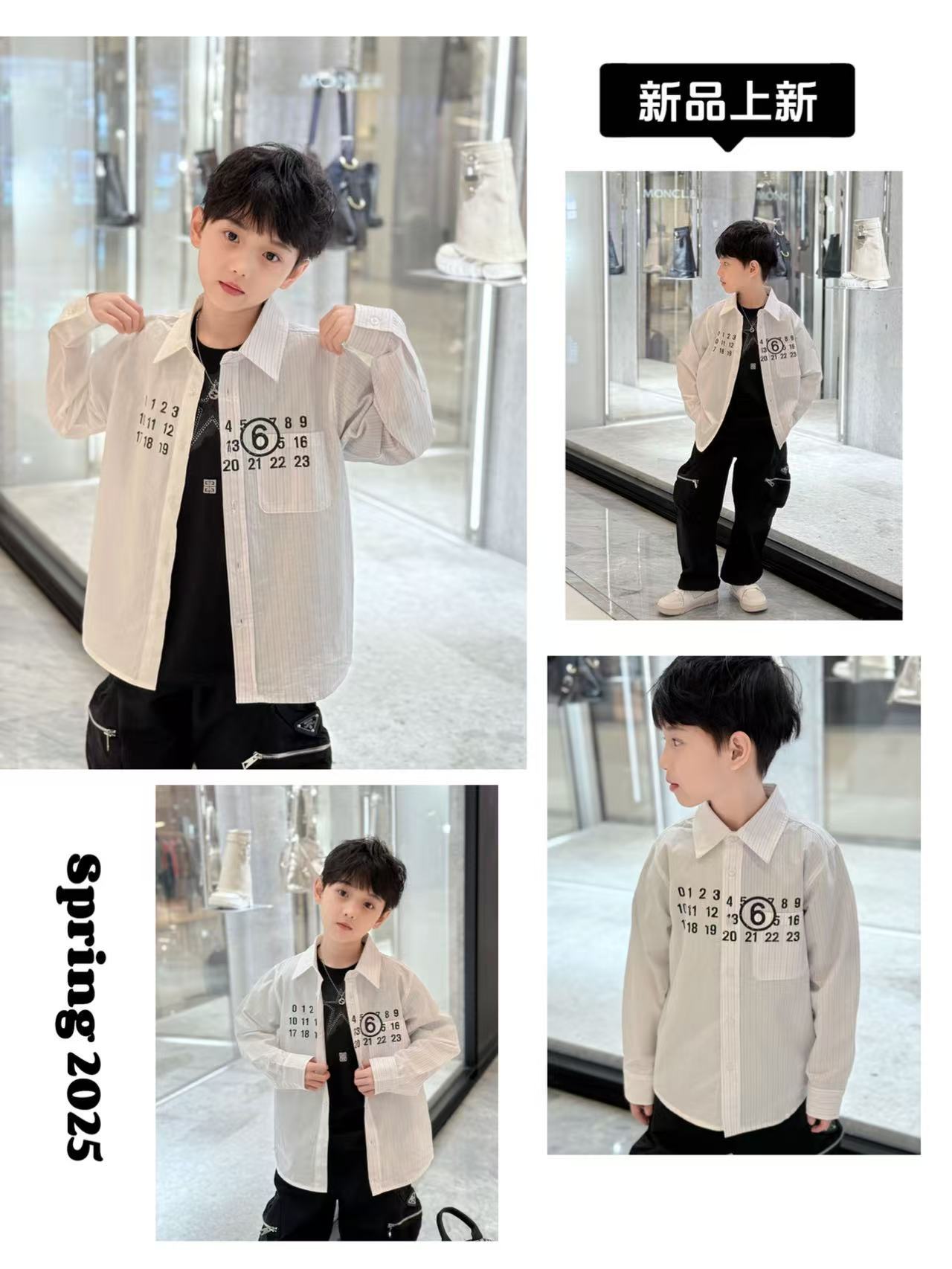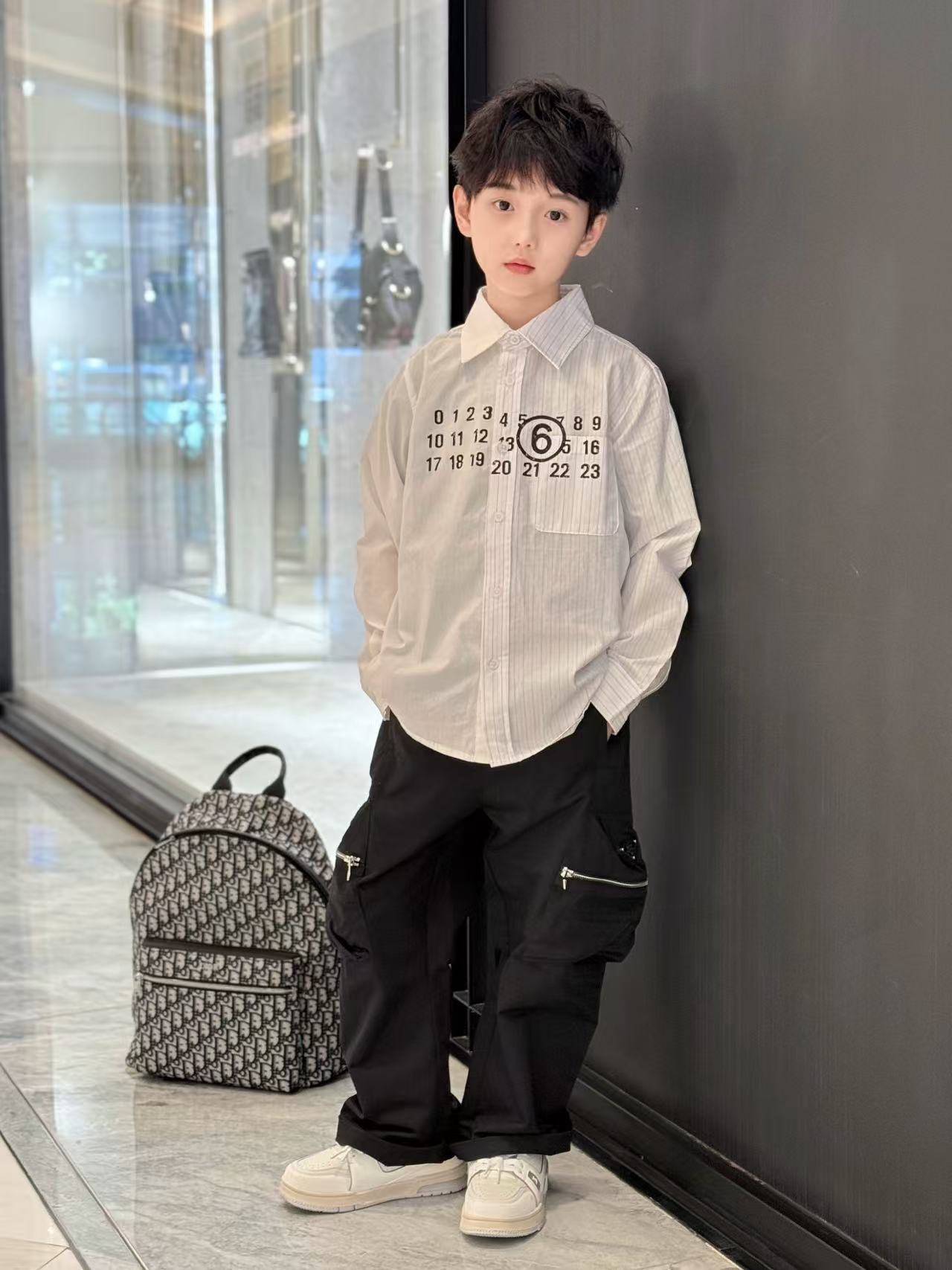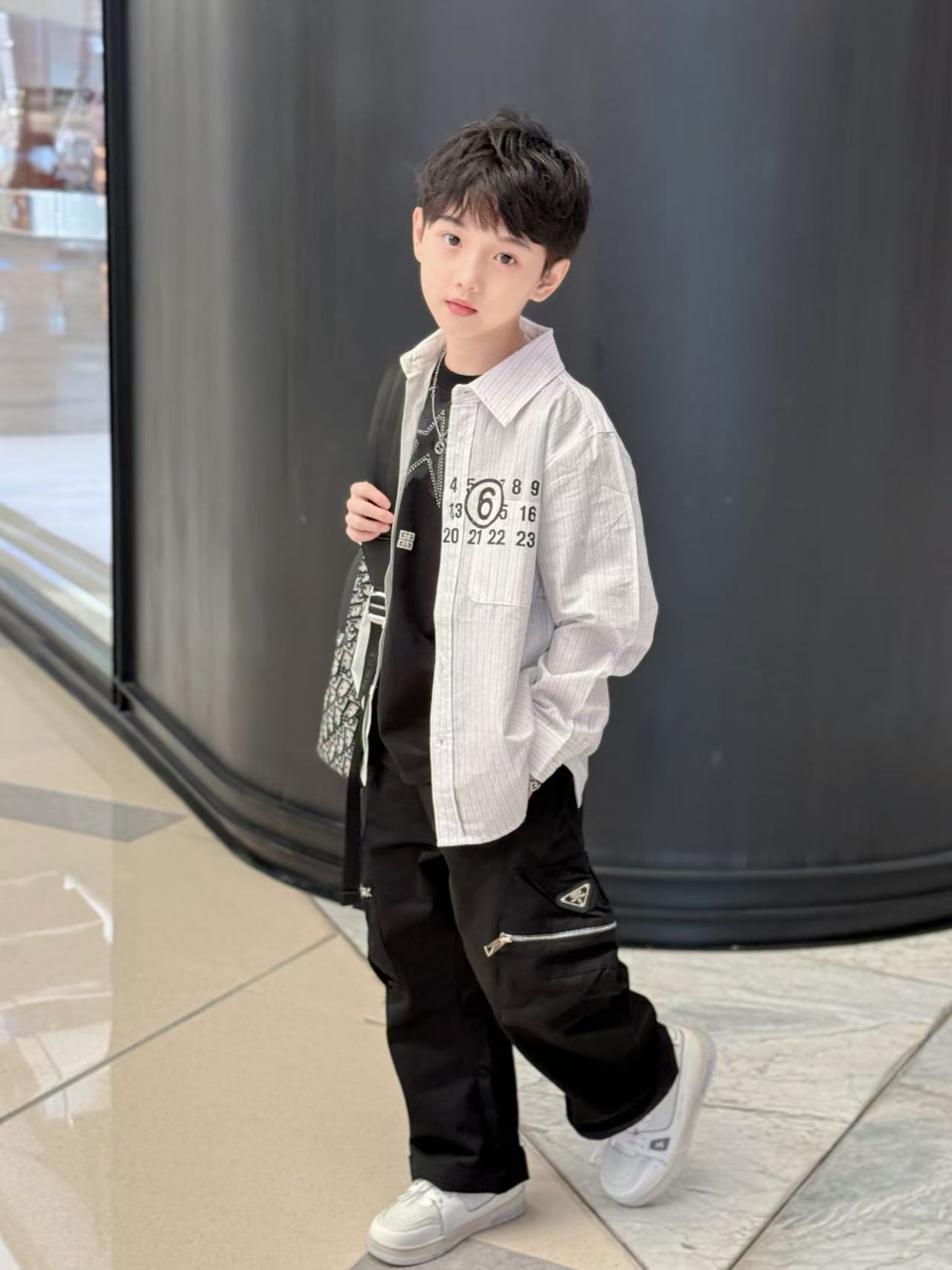 25 이른 봄 소년의 디지털 스트라이프 패치 워크 인쇄 긴팔 셔츠 블랙 대형 포켓 시미터 작업복 바지
