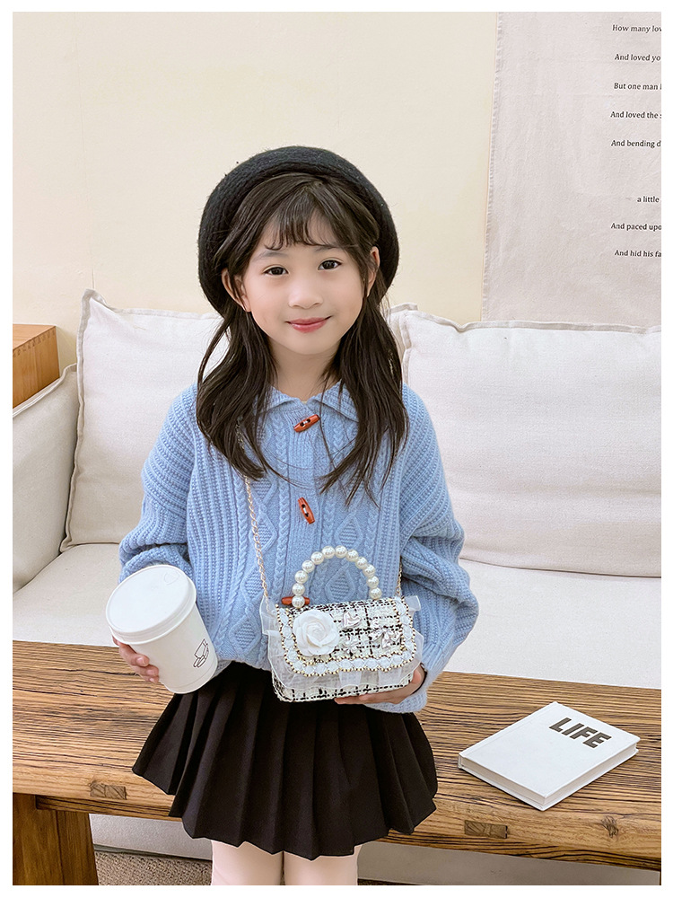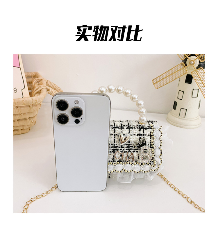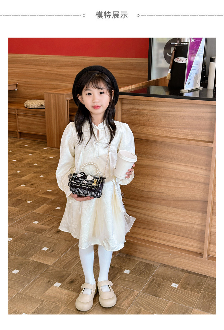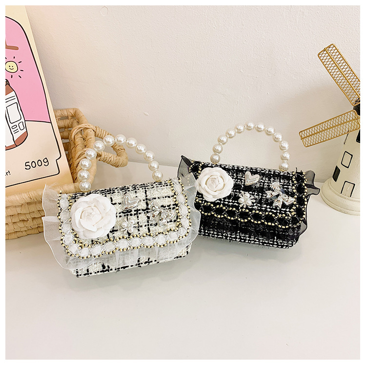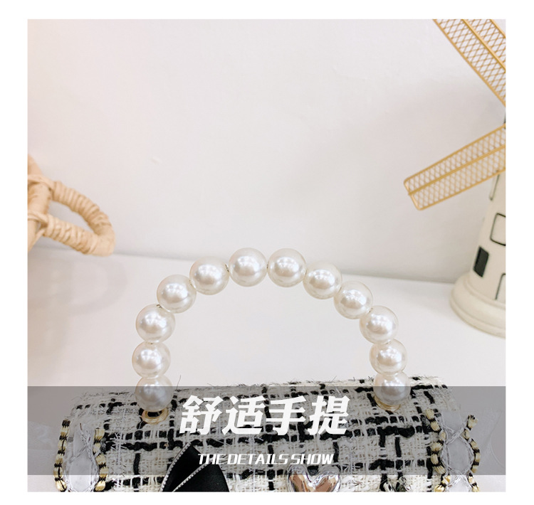 迷你时尚女童珍珠零钱包2024新格纹时尚韩版小女孩手提包童装搭配