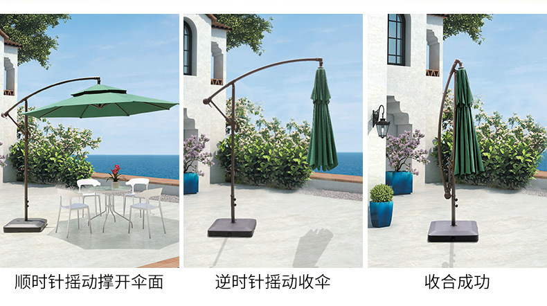 • ¢2.7m 철제 프레임 바나나 우산 싱글 탑, 60kg 물탱크 베이스