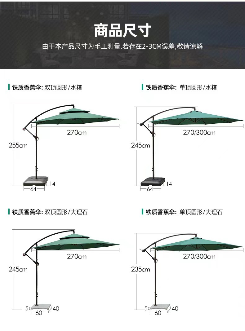 • ¢2.7m 철제 프레임 더블 탑 바나나 우산 더블 탑 60kg 물탱크 베이스
