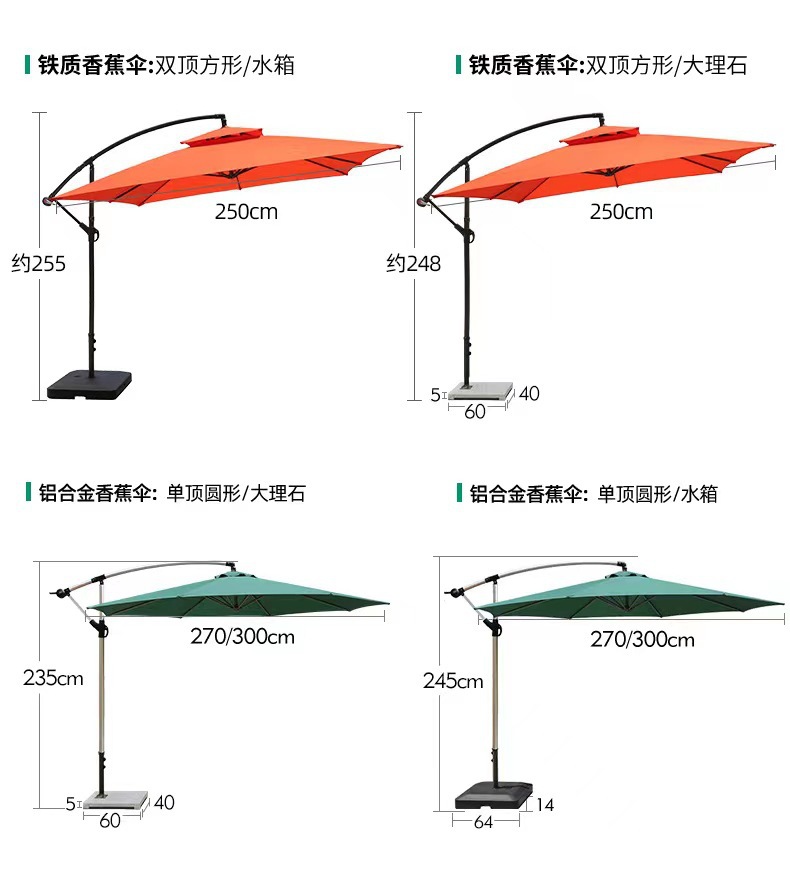 • ¢3.0m 철제 프레임 더블 탑 바나나 우산 더블 탑 60kg 물탱크 베이스