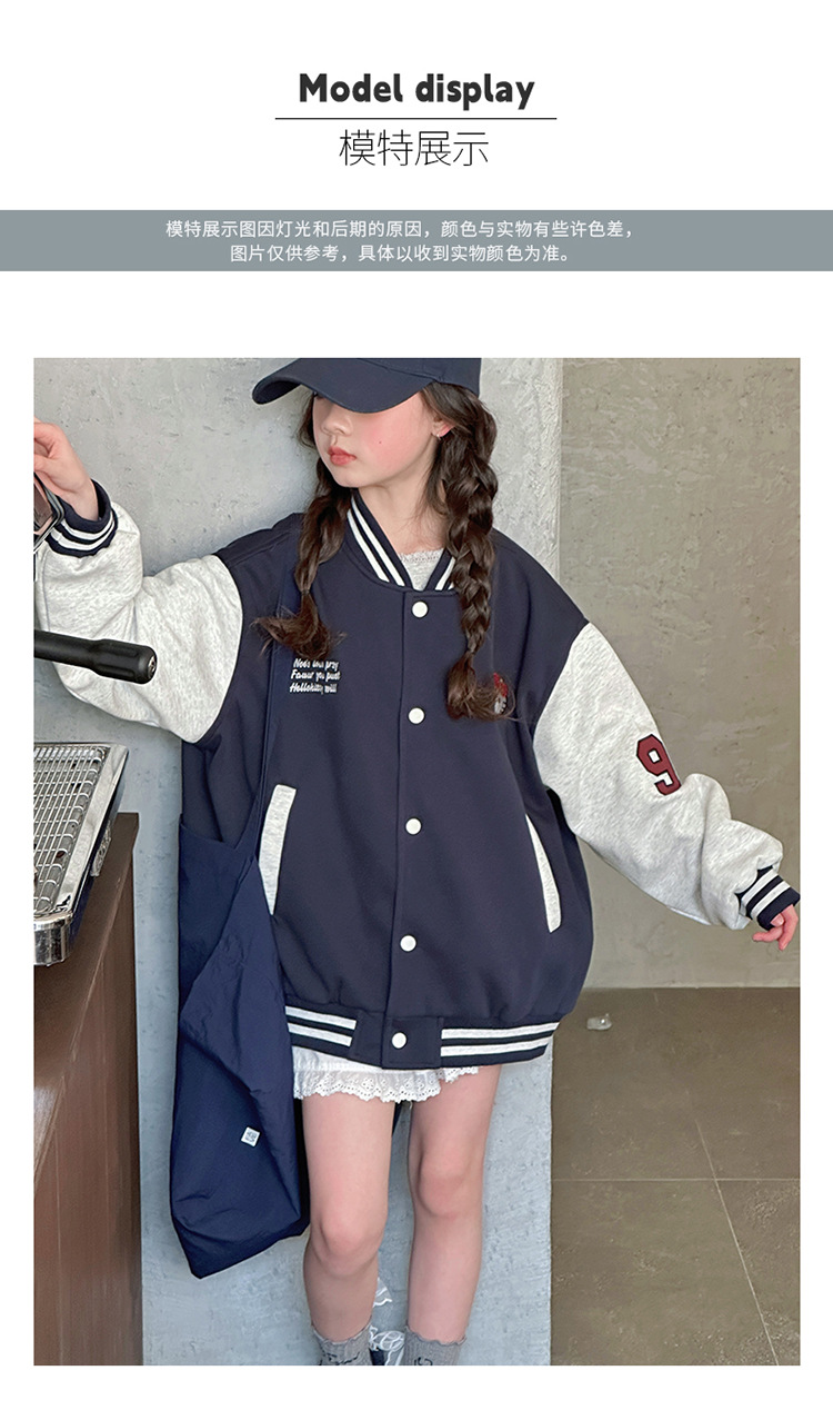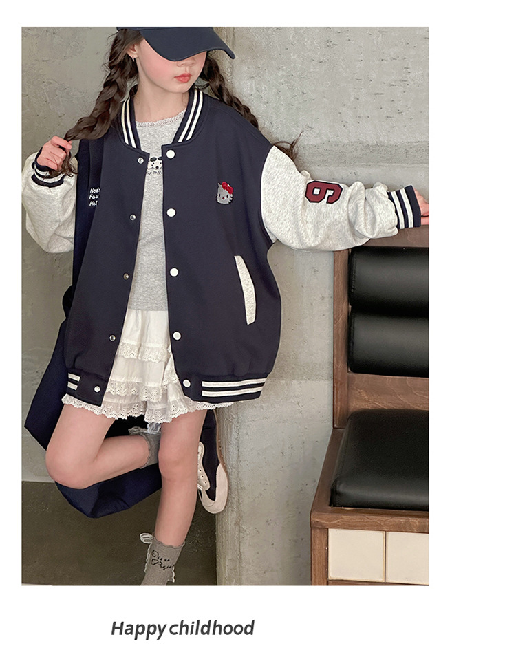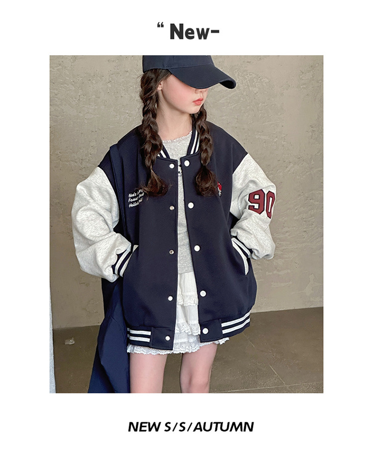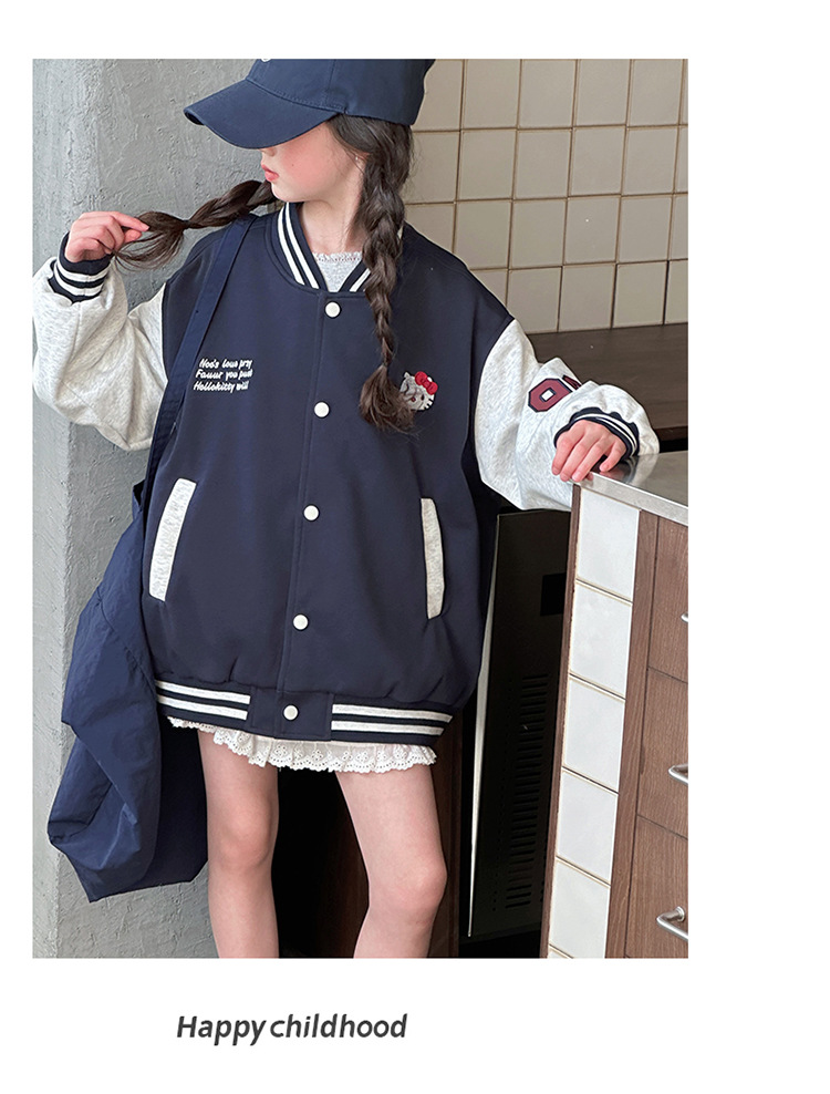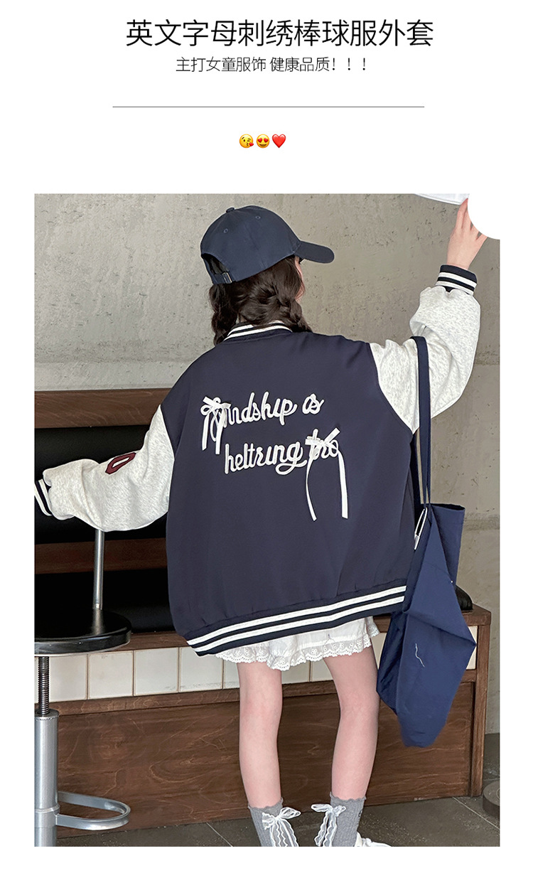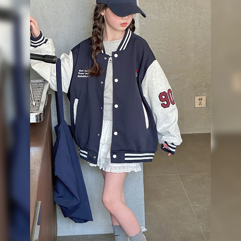 여자 봄 야구 세트 코트 2025 새로운 스타일 중 큰 아이 소녀 유행 만화 서양 스타일 사이버 축하 카디건 탑스토어 가기