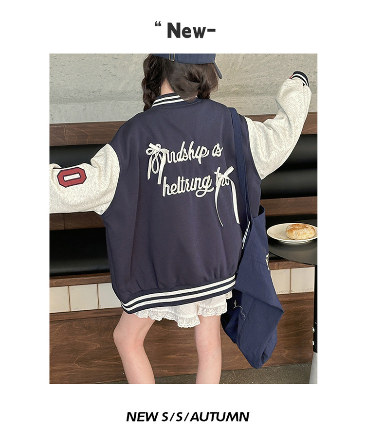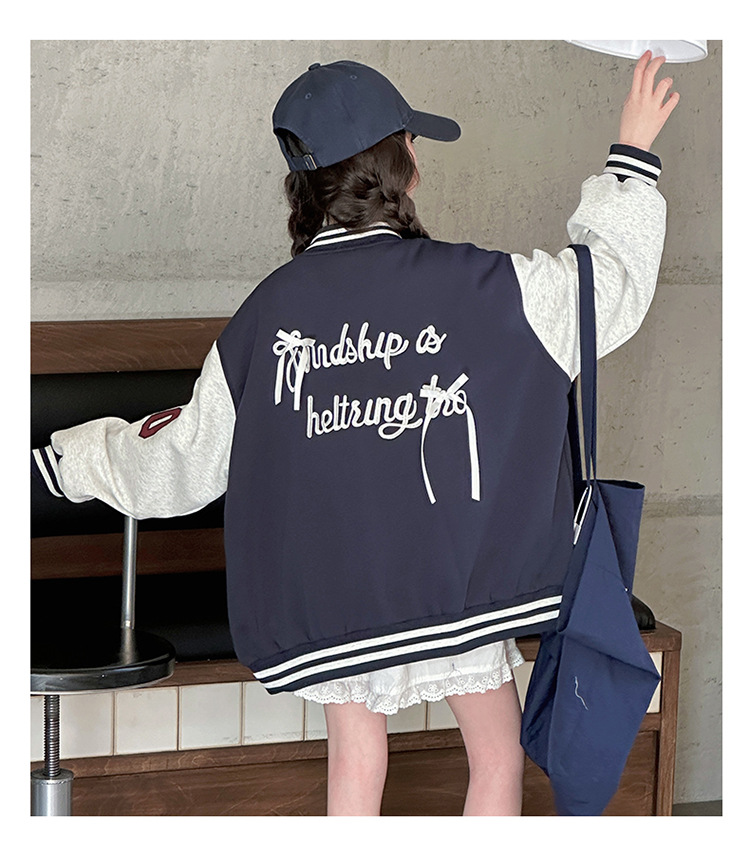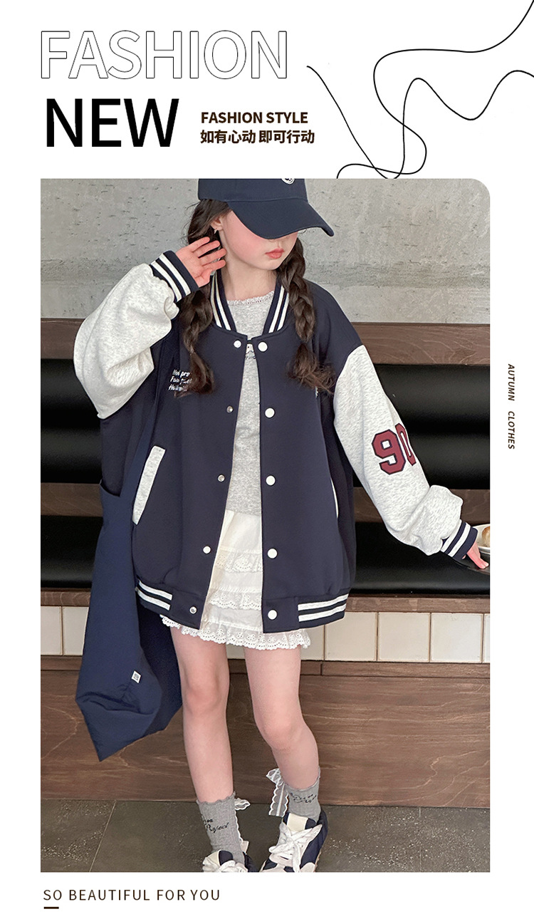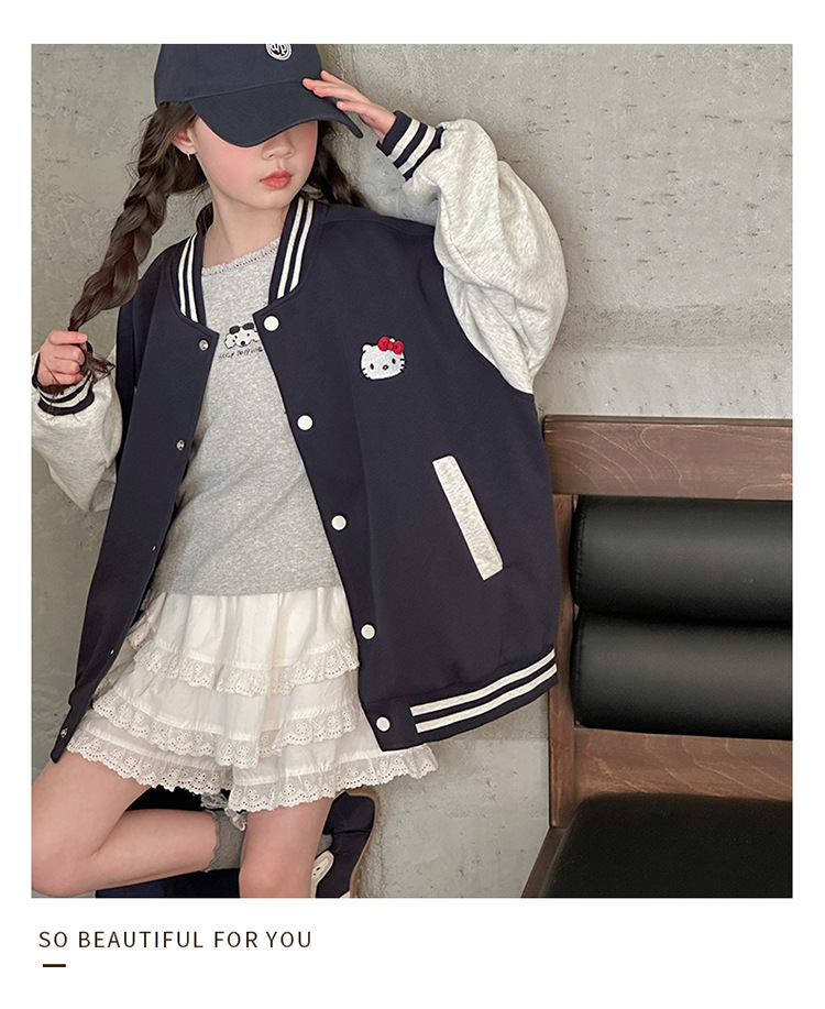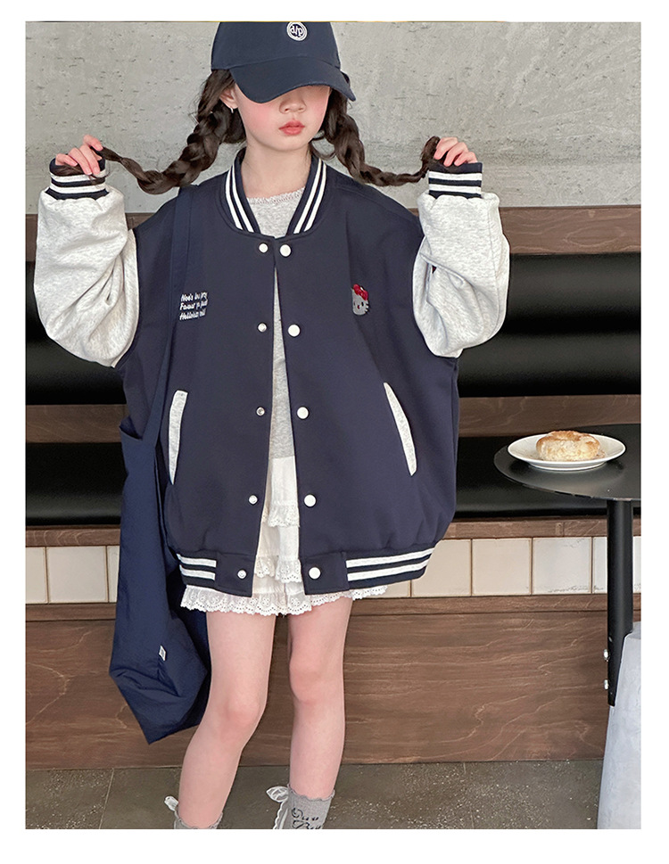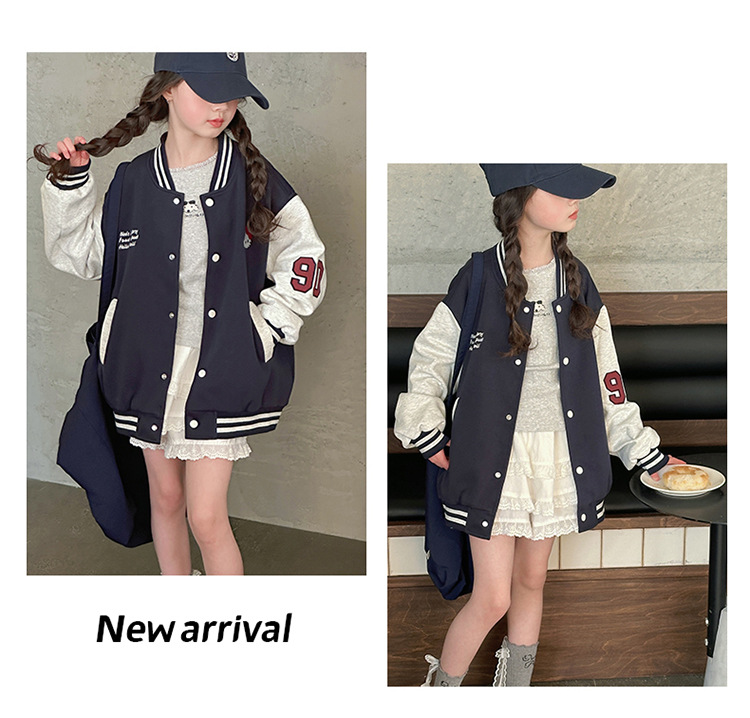 여자 봄 야구 세트 코트 2025 새로운 스타일 중 큰 아이 소녀 유행 만화 서양 스타일 사이버 축하 카디건 탑스토어 가기