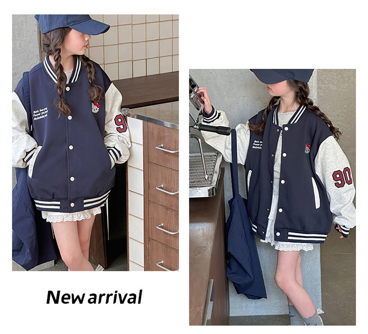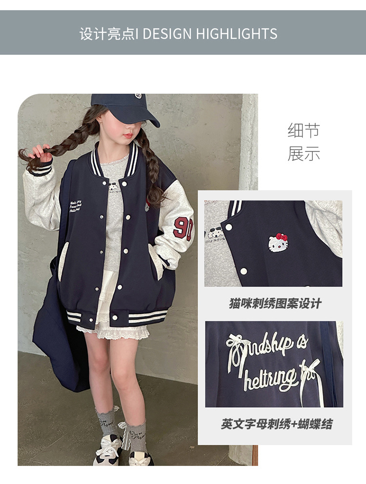 여자 봄 야구 세트 코트 2025 새로운 스타일 중 큰 아이 소녀 유행 만화 서양 스타일 사이버 축하 카디건 탑