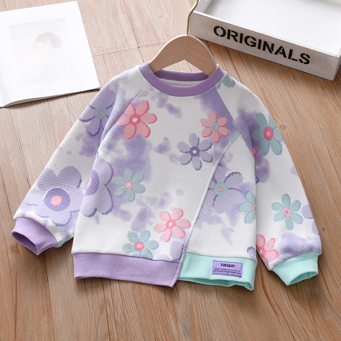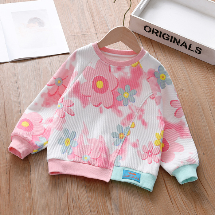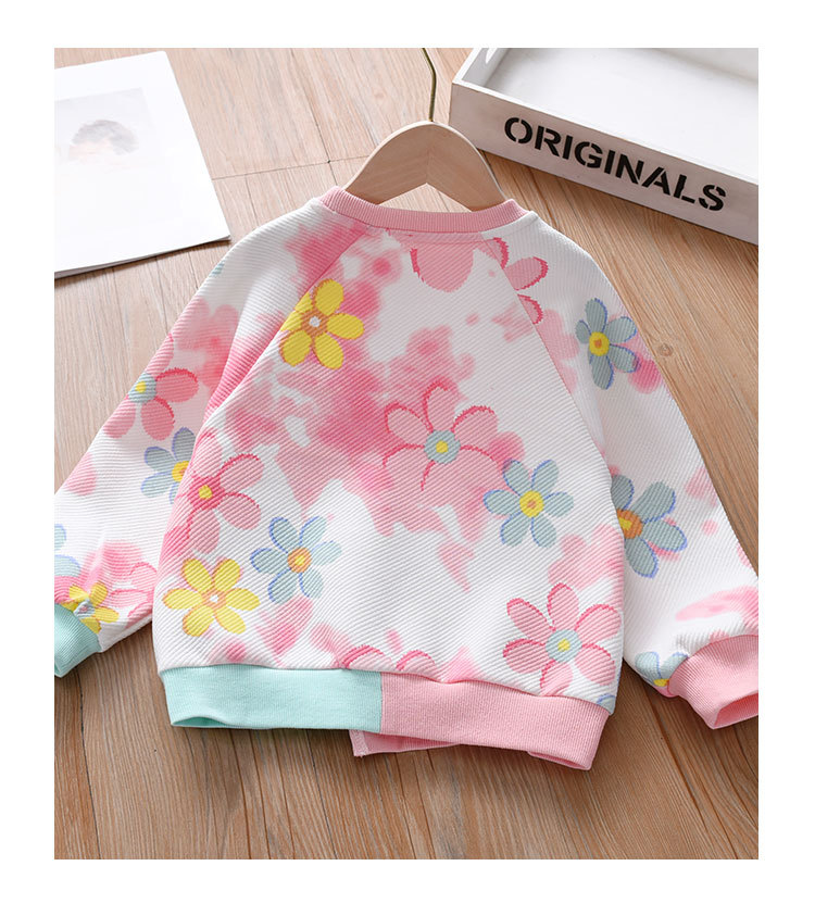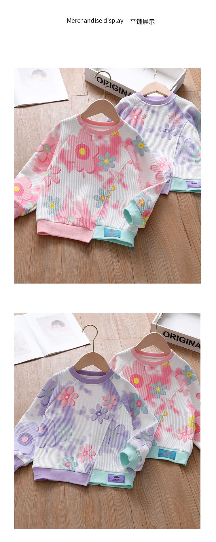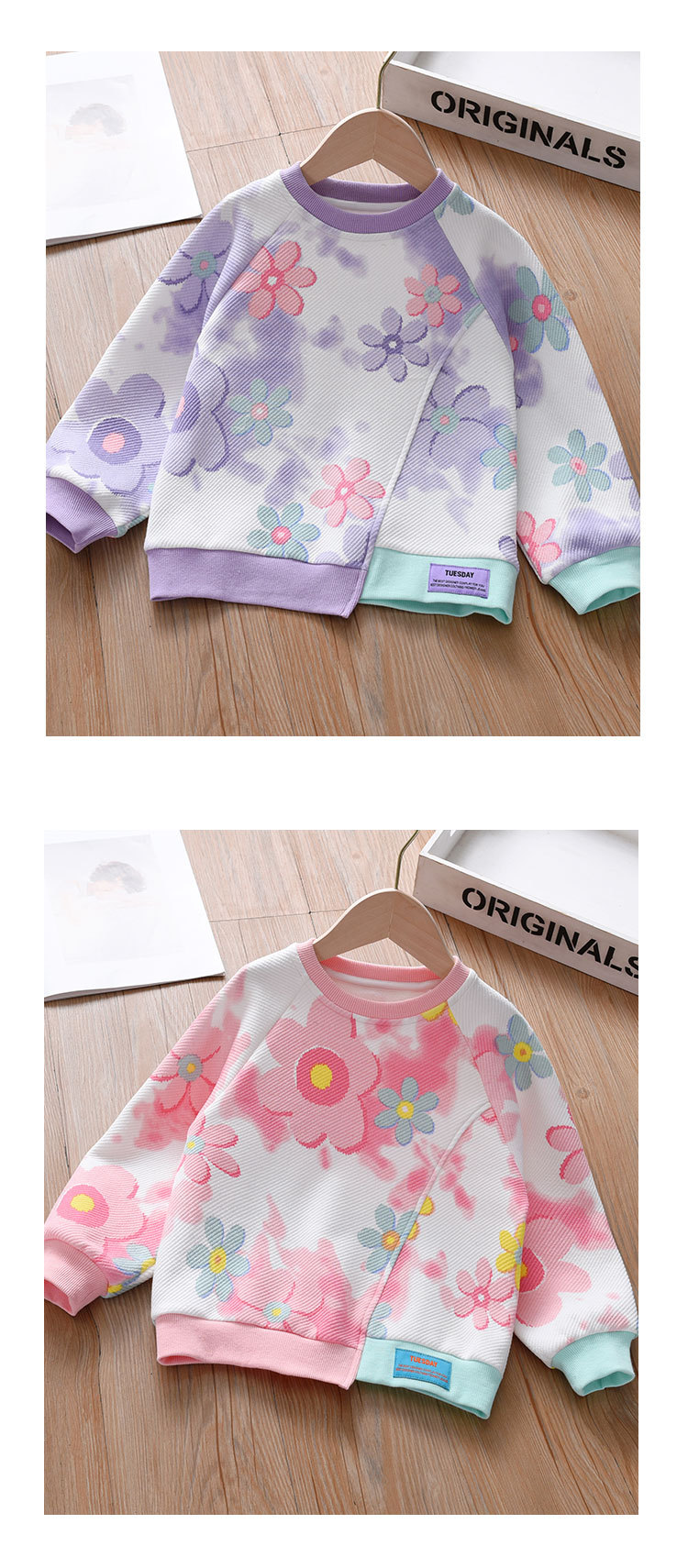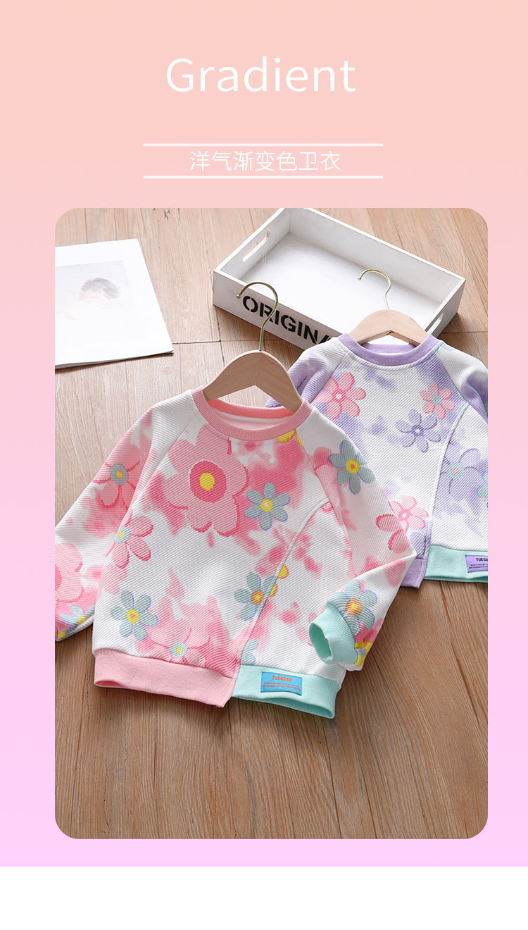 소녀 스웨트 셔츠 2025 가을 새로운 어린이 캐주얼 느슨한 꽃 그라디언트 인쇄 탑 봄과 가을 패션스토어 가기