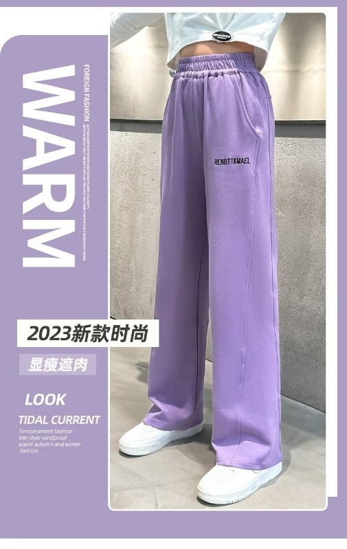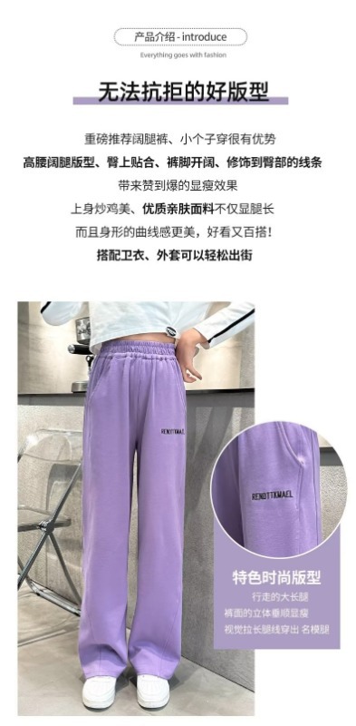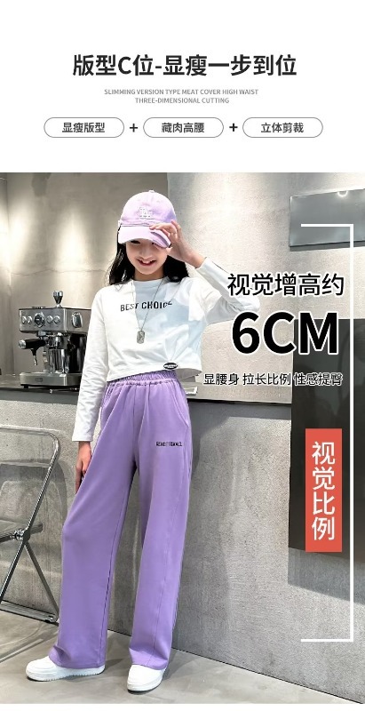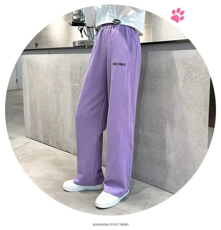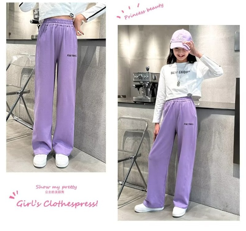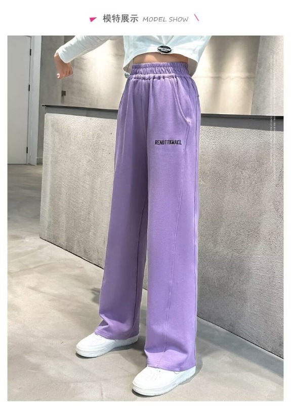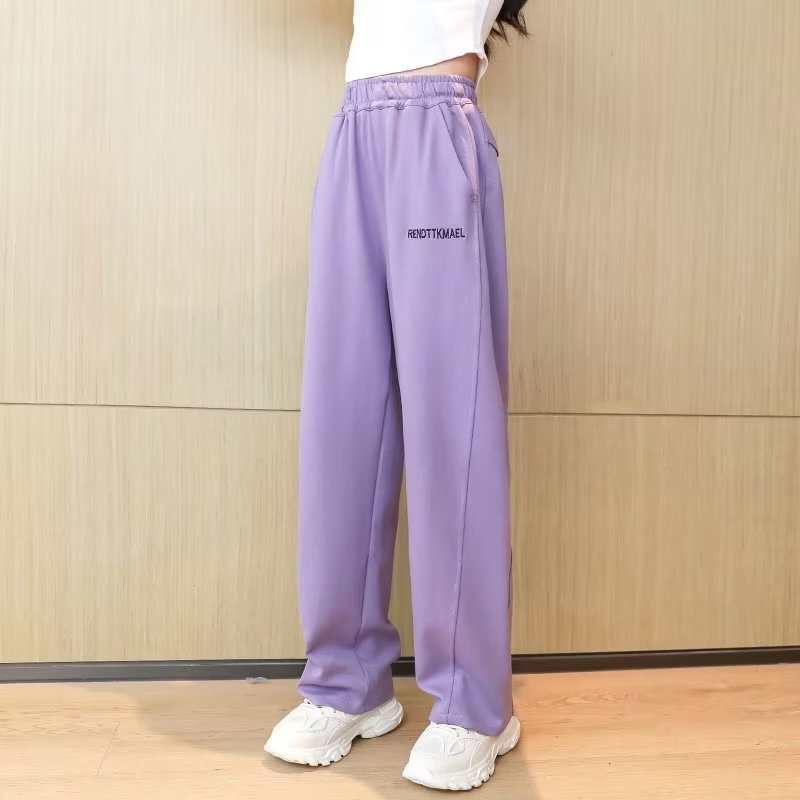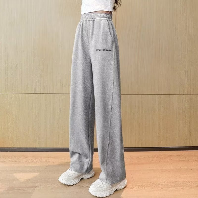 소녀 바지 봄과 가을 2025 새로운 스타일 소녀 가을 착용 스포츠 바지 스트레이트 튜브 느슨한 넓은 다리 슬리밍 바지