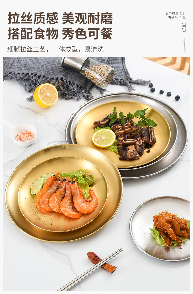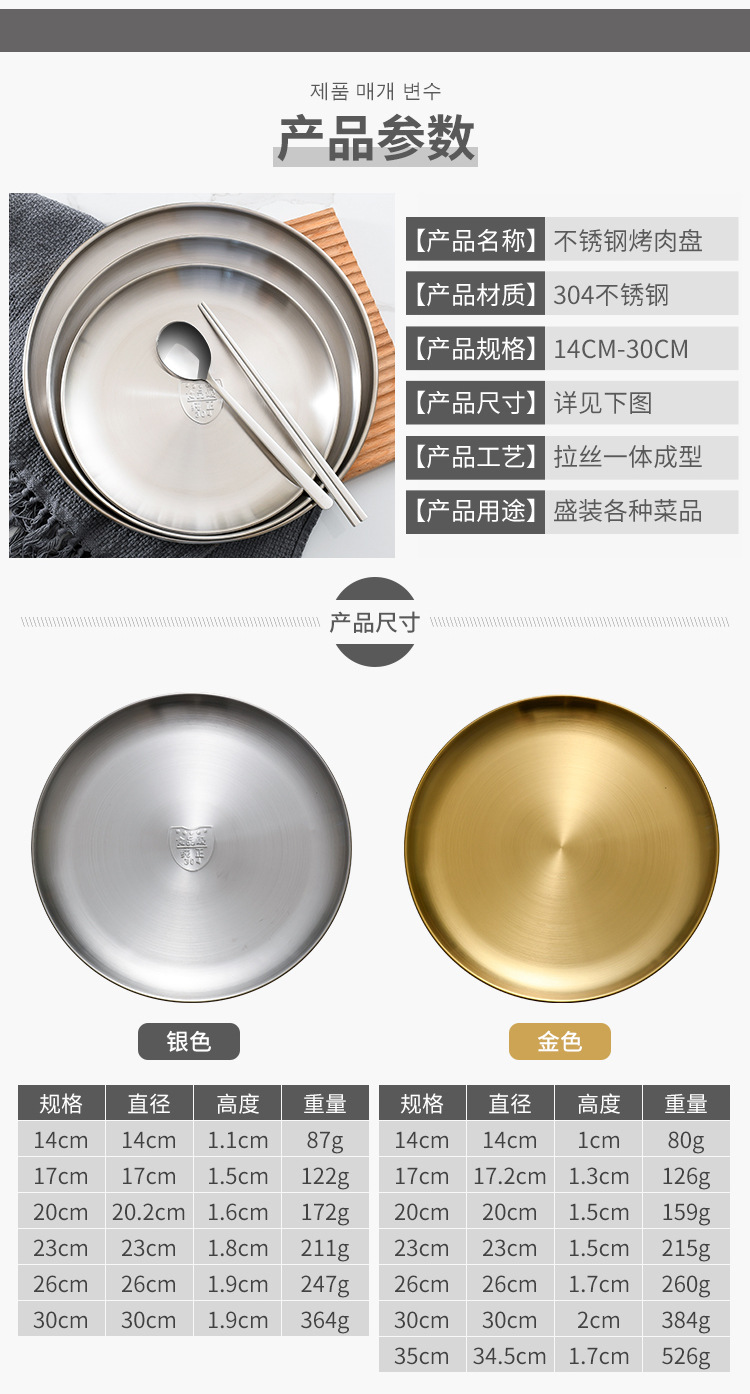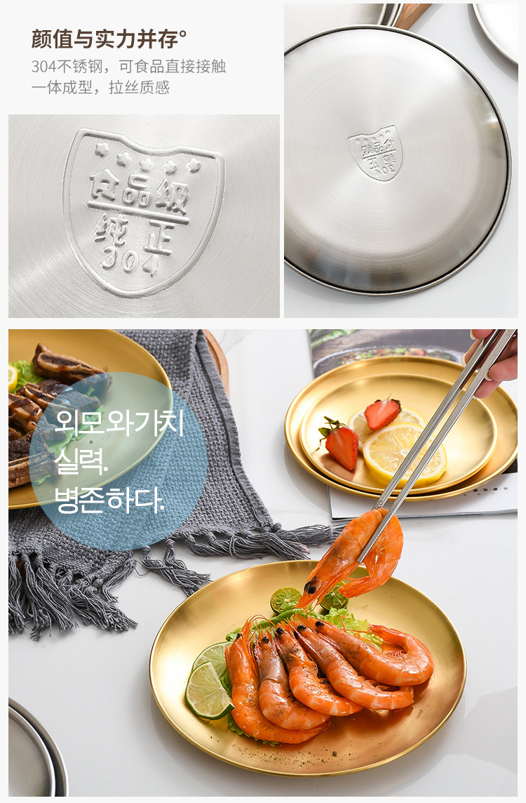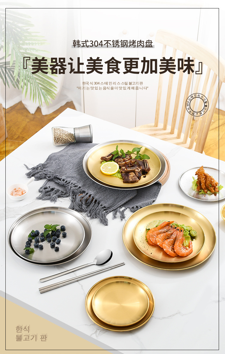 304 스테인레스 스틸 디스크 한국식 바베큐 플레이트 자루 플레이트 서양 식품 플레이트 뼈 플레이트 스테이크 플레이트 식기 과일 플레이트스토어 가기