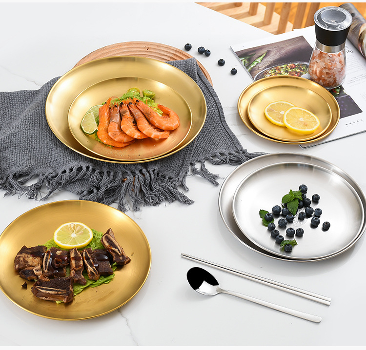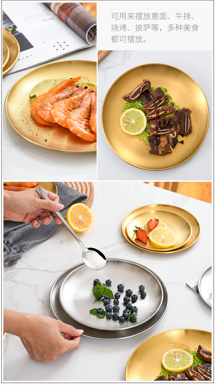 304 스테인레스 스틸 디스크 한국식 바베큐 플레이트 자루 플레이트 서양 식품 플레이트 뼈 플레이트 스테이크 플레이트 식기 과일 플레이트