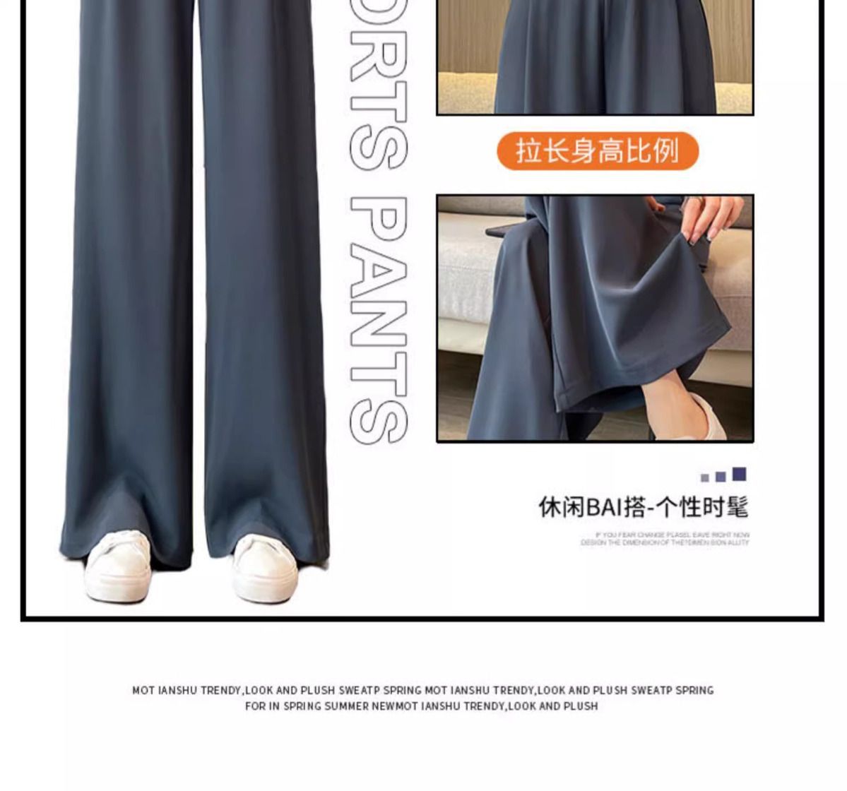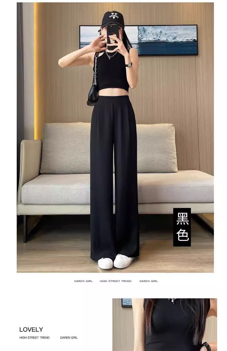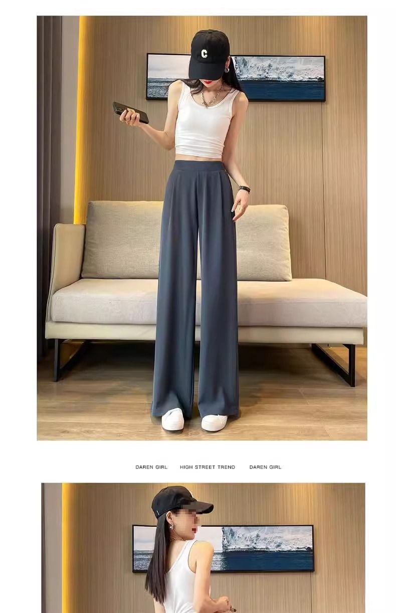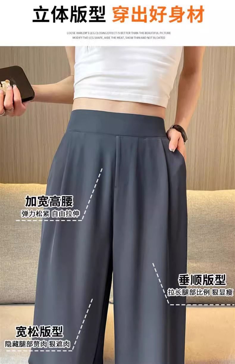 아이스 실크 넓은 다리 바지 여성용 여름 얇은 대형 바지 여성용 통통녀 느슨한 슬리밍 스트레이트 캐주얼 바지