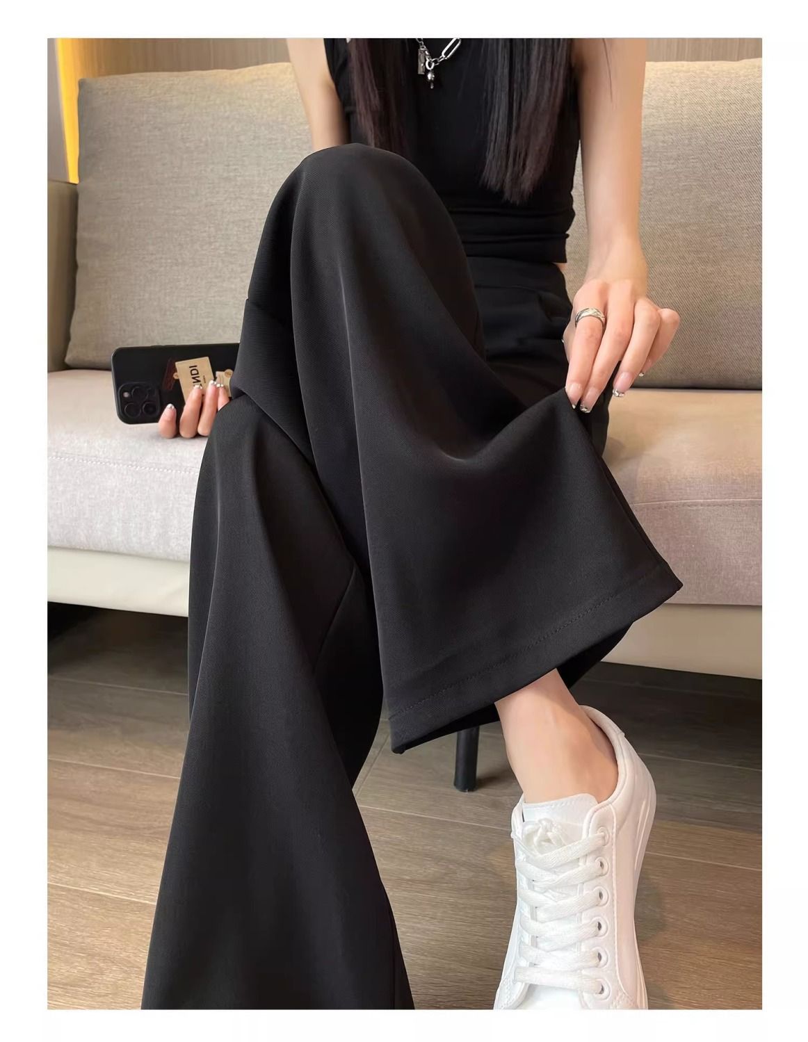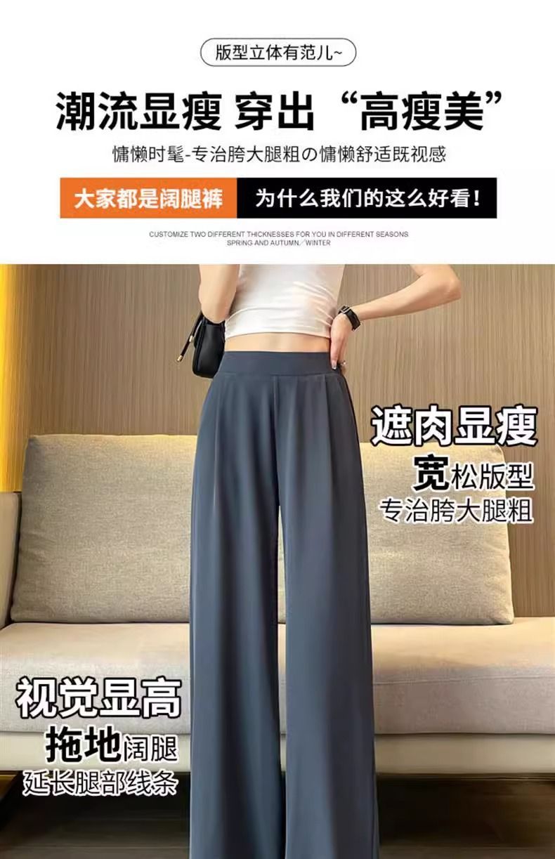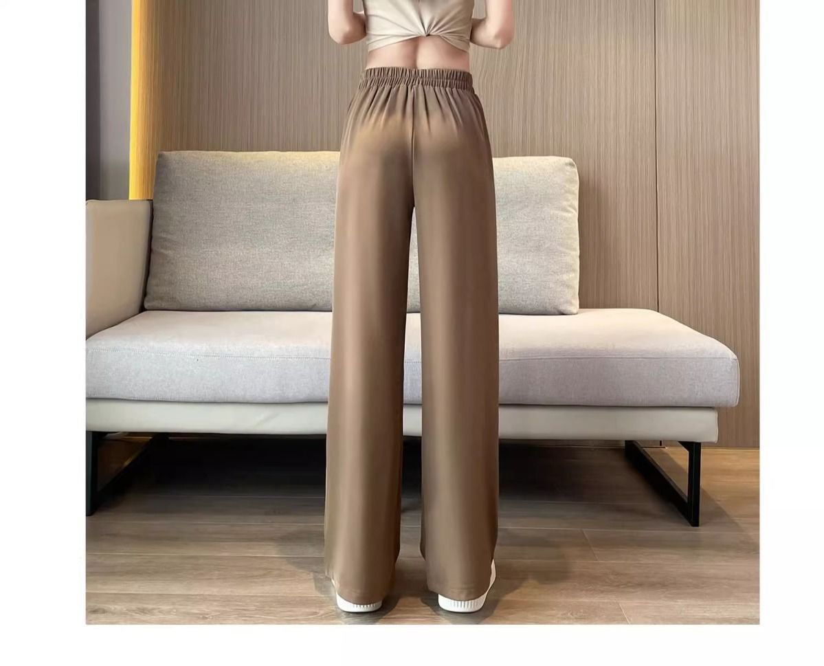 아이스 실크 넓은 다리 바지 여성용 여름 얇은 대형 바지 여성용 통통녀 느슨한 슬리밍 스트레이트 캐주얼 바지