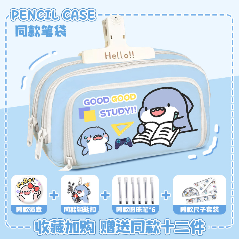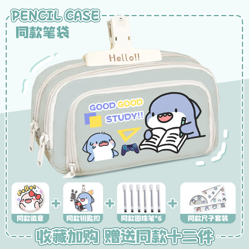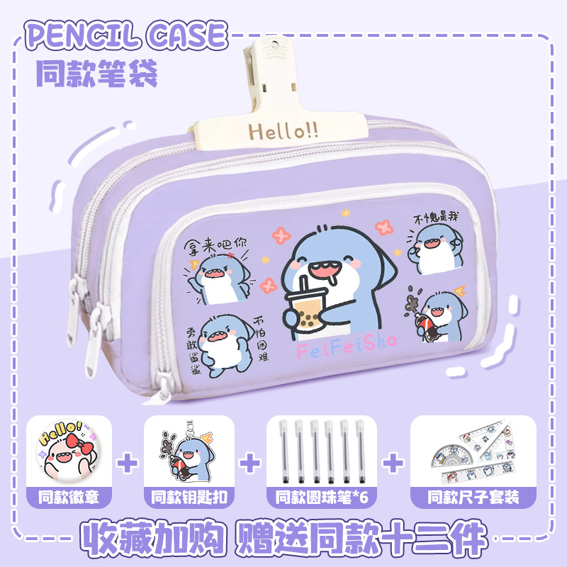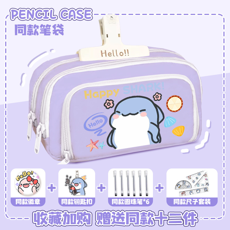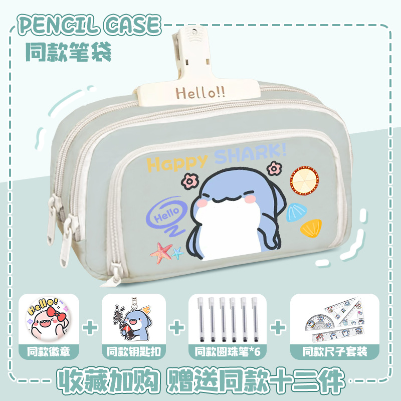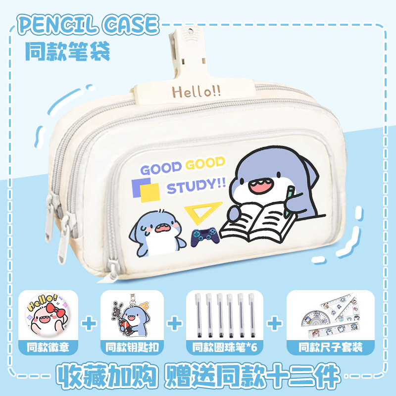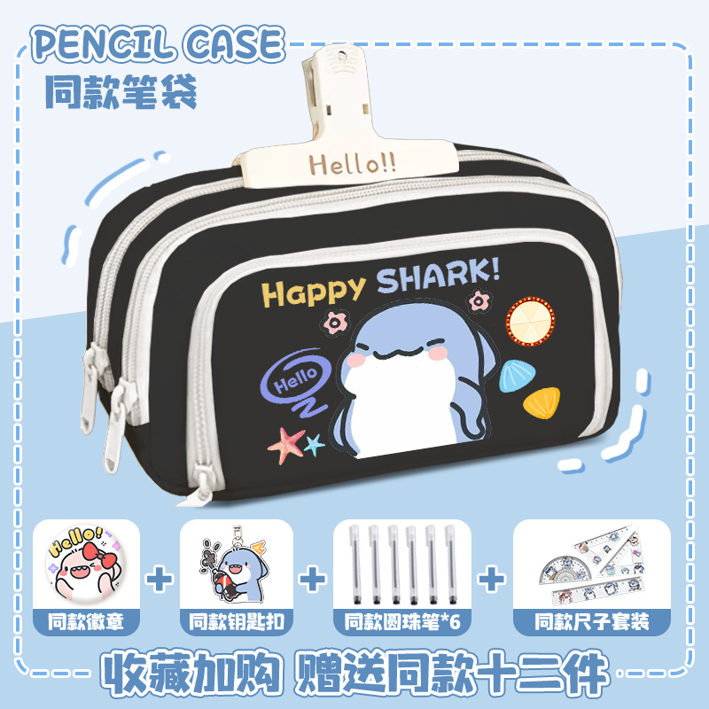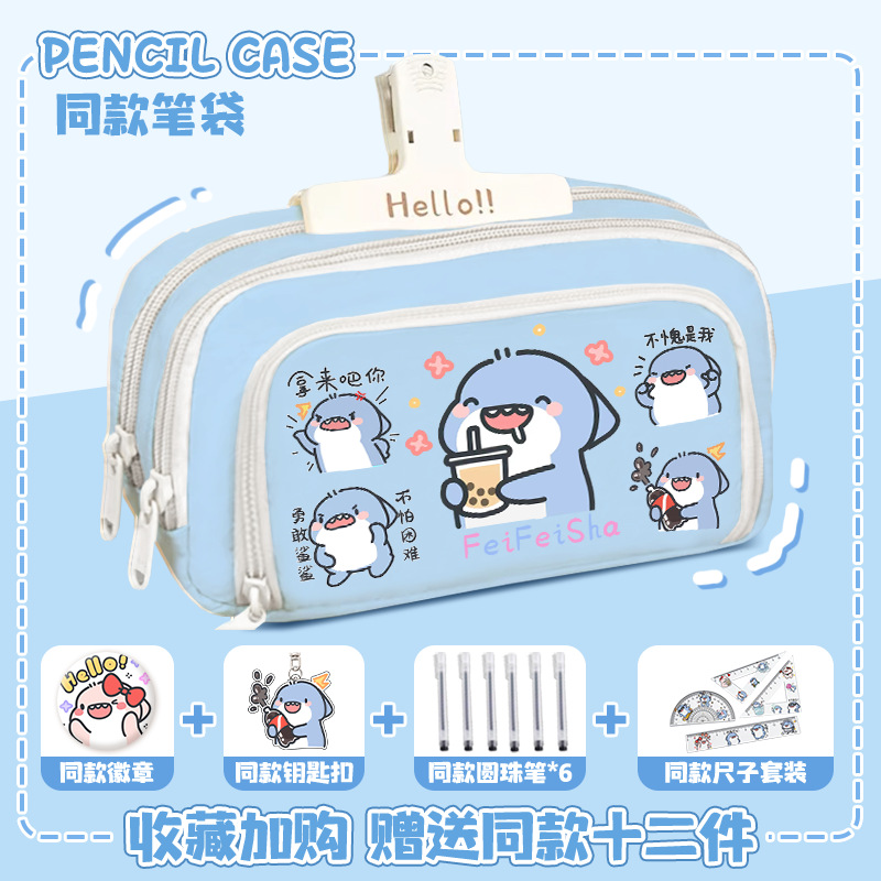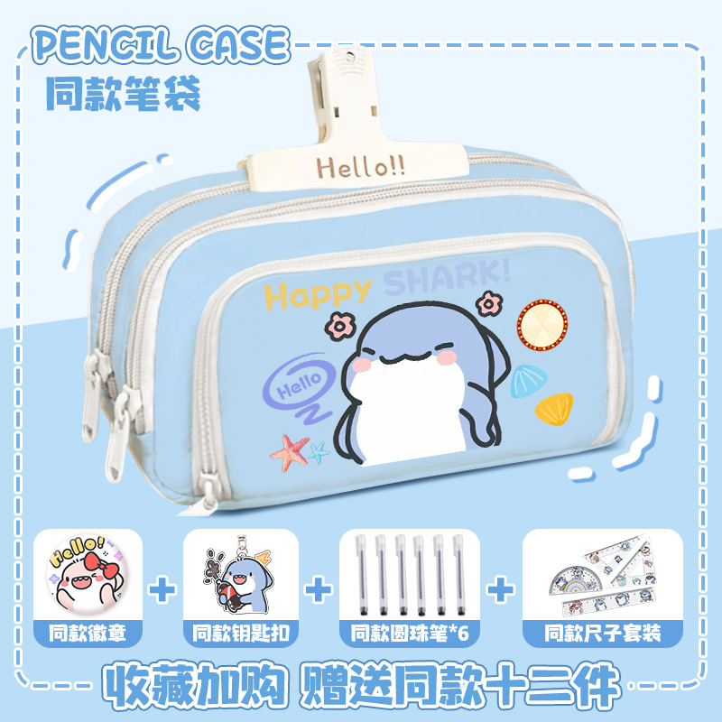 뚱뚱한 상어 만화 2 차 요소 연필 케이스 초등학교 중학교 학생 어린이 문구 상자 6 학년 합동 주변 소년 소녀스토어 가기