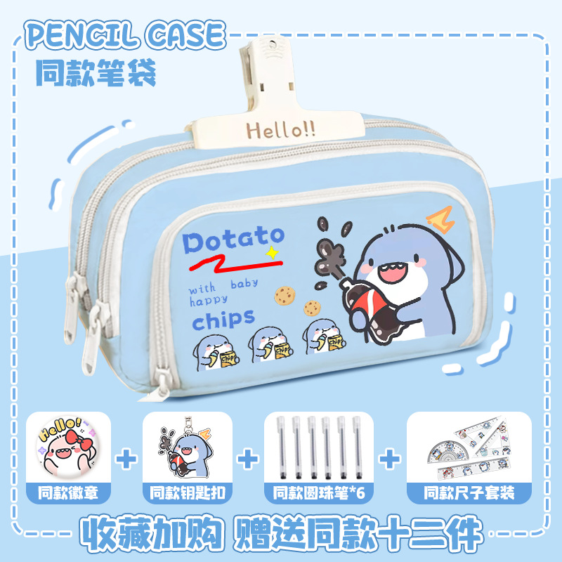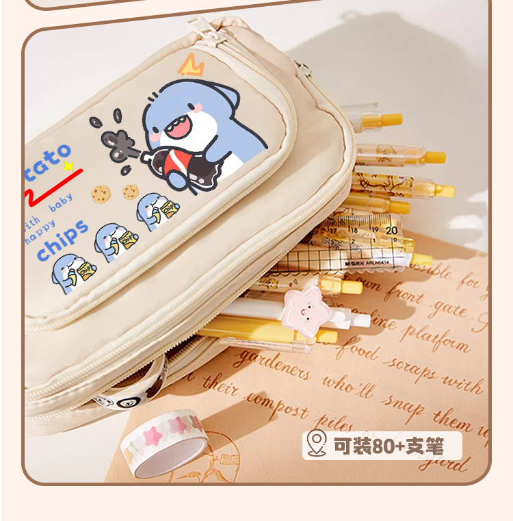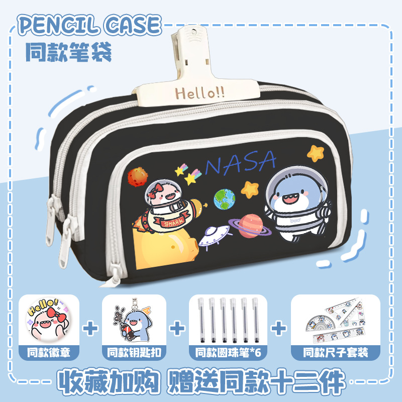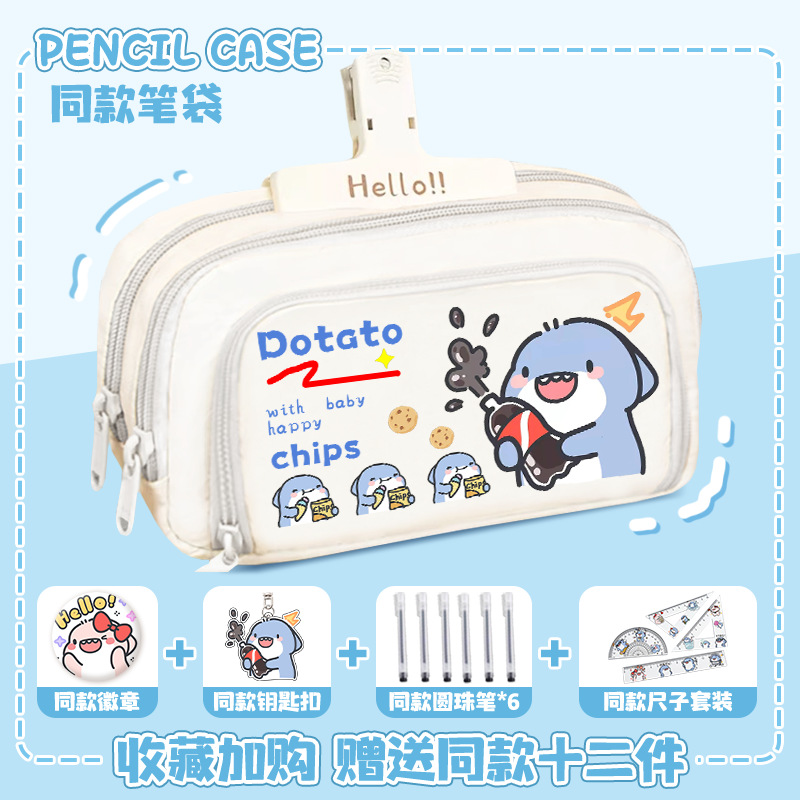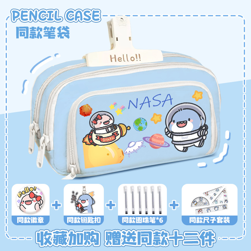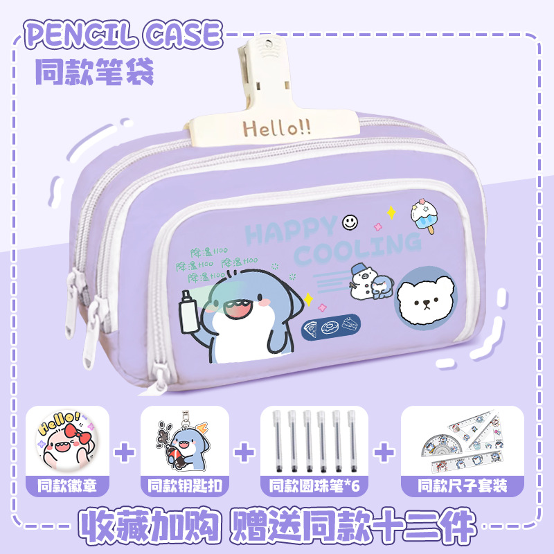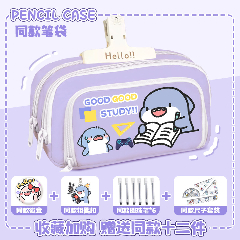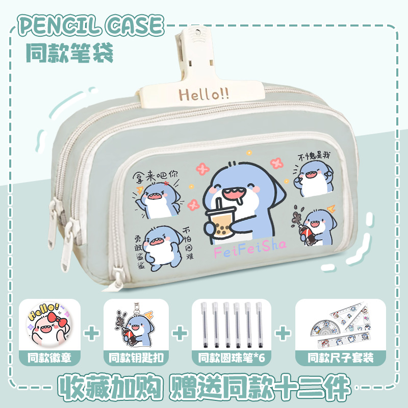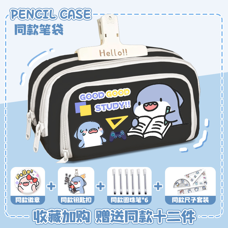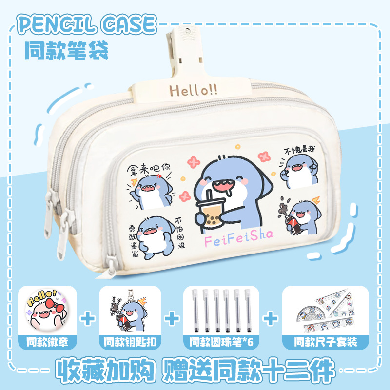뚱뚱한 상어 만화 2 차 요소 연필 케이스 초등학교 중학교 학생 어린이 문구 상자 6 학년 합동 주변 소년 소녀스토어 가기
