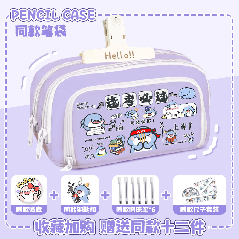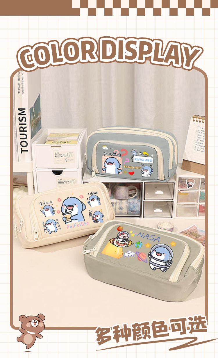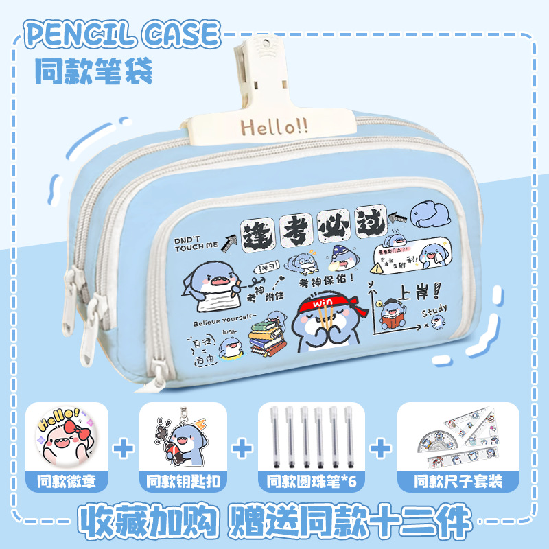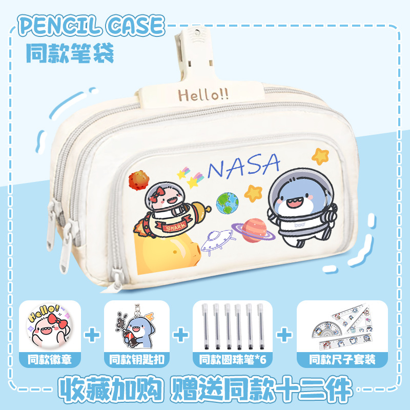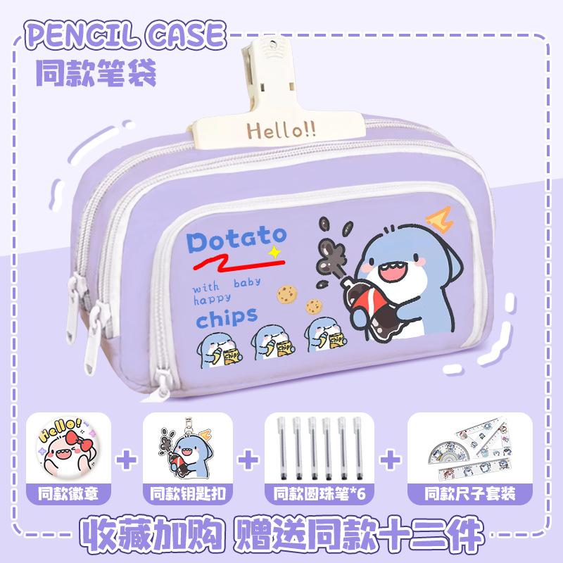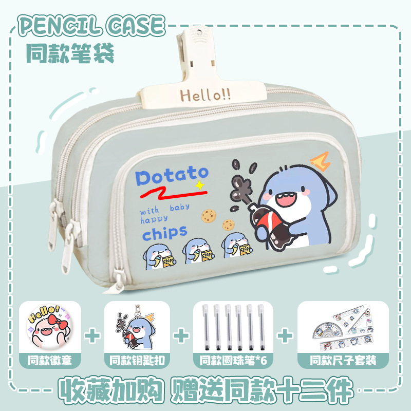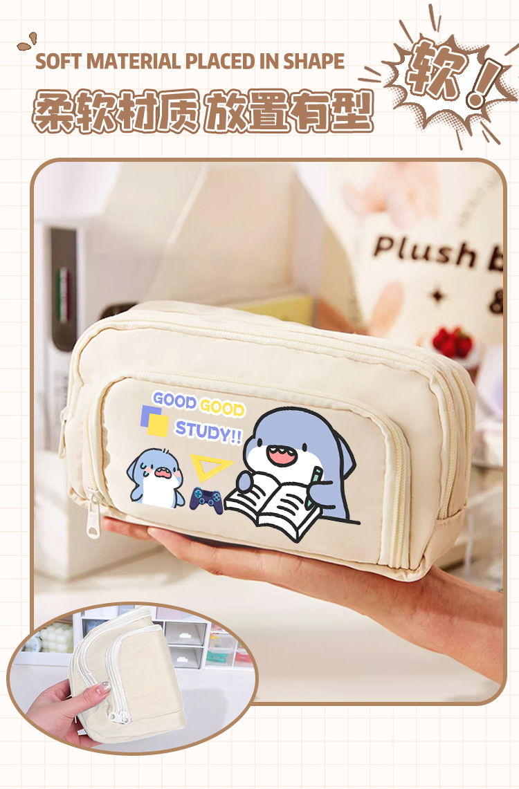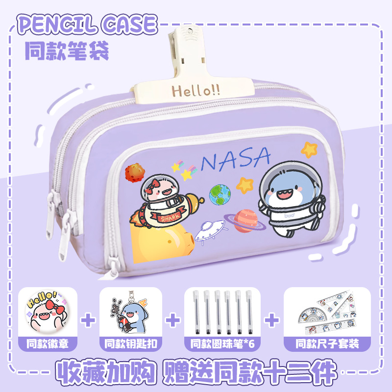 뚱뚱한 상어 만화 2 차 요소 연필 케이스 초등학교 중학교 학생 어린이 문구 상자 6 학년 합동 주변 소년 소녀스토어 가기