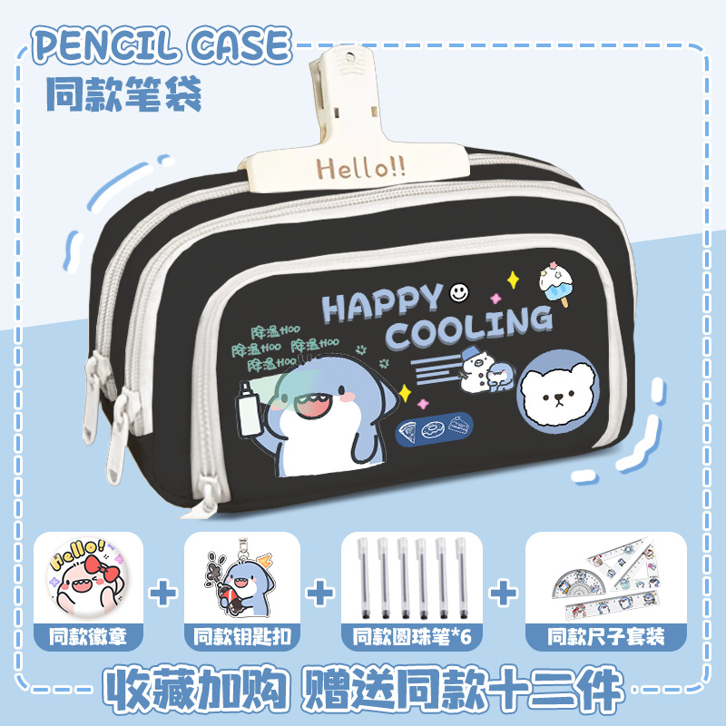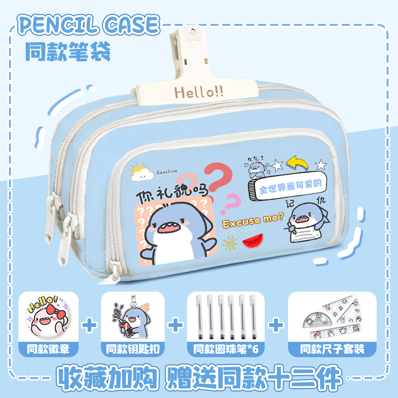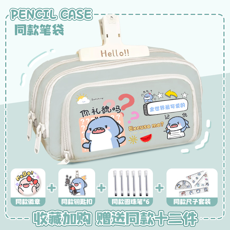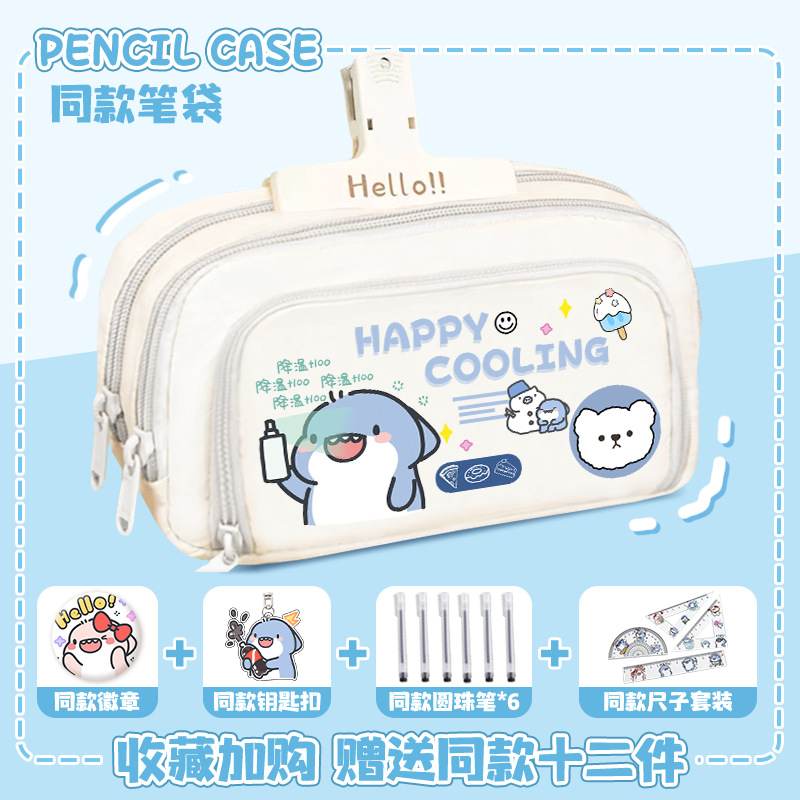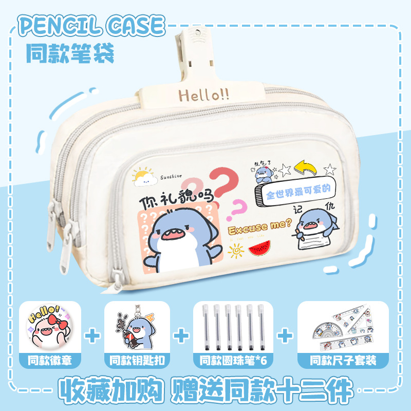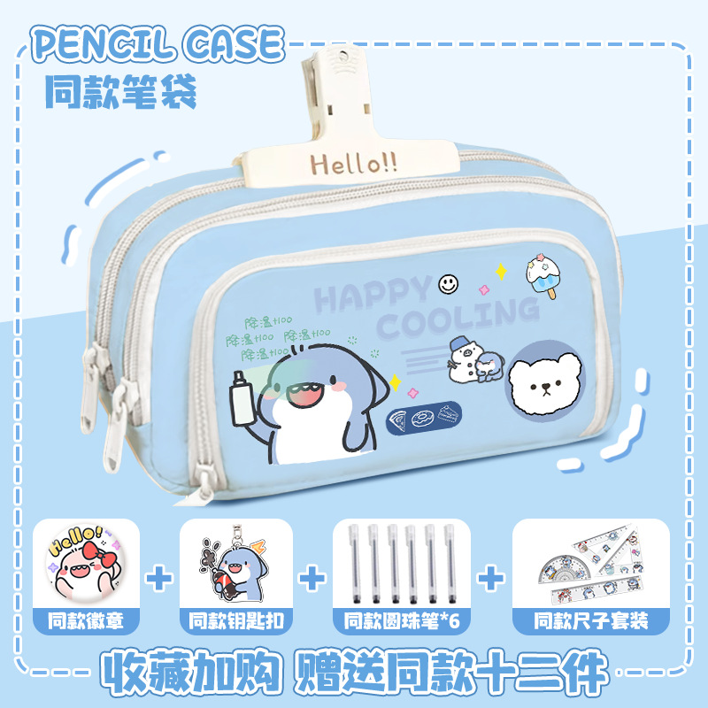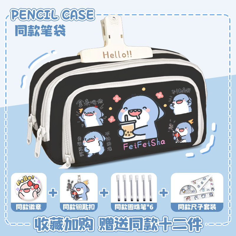 뚱뚱한 상어 만화 2 차 요소 연필 케이스 초등학교 중학교 학생 어린이 문구 상자 6 학년 합동 주변 소년 소녀