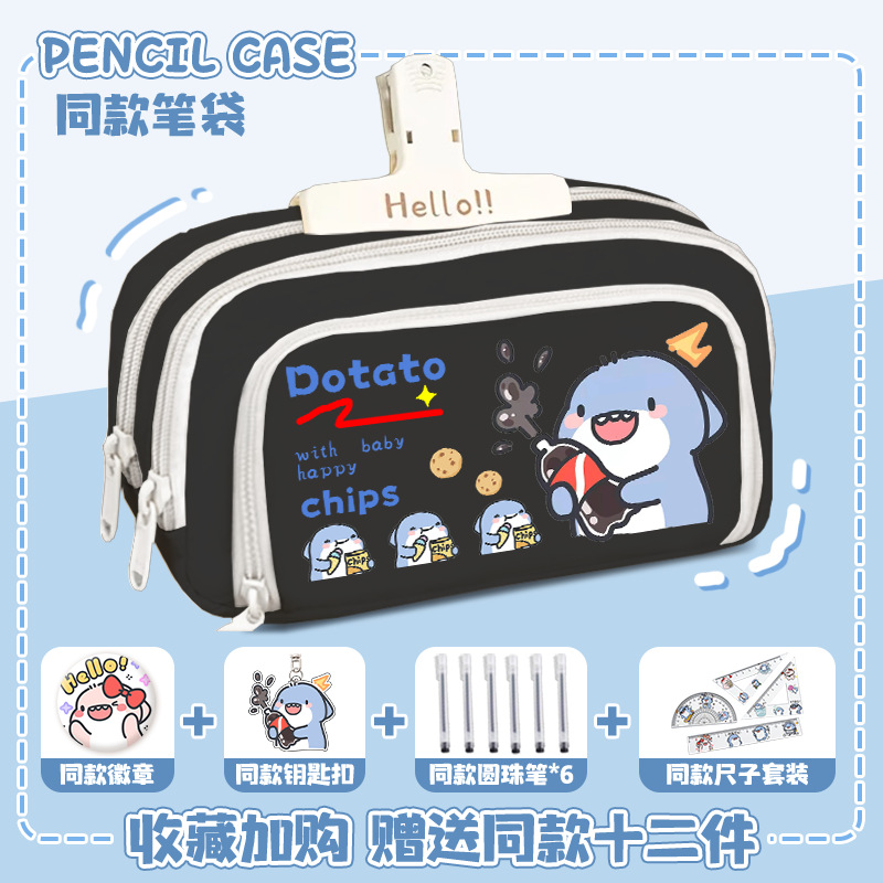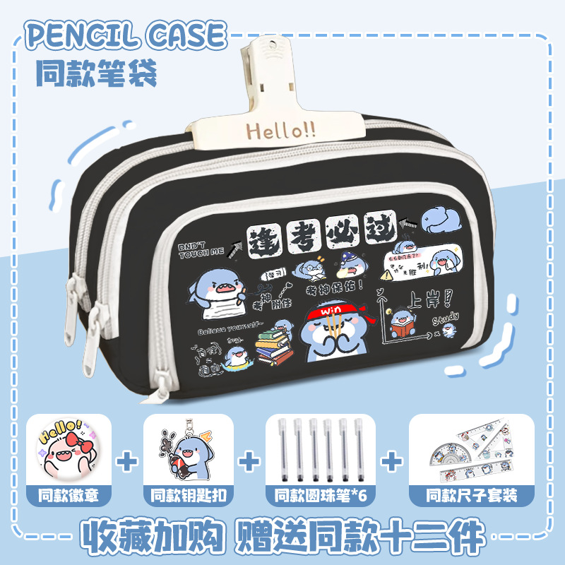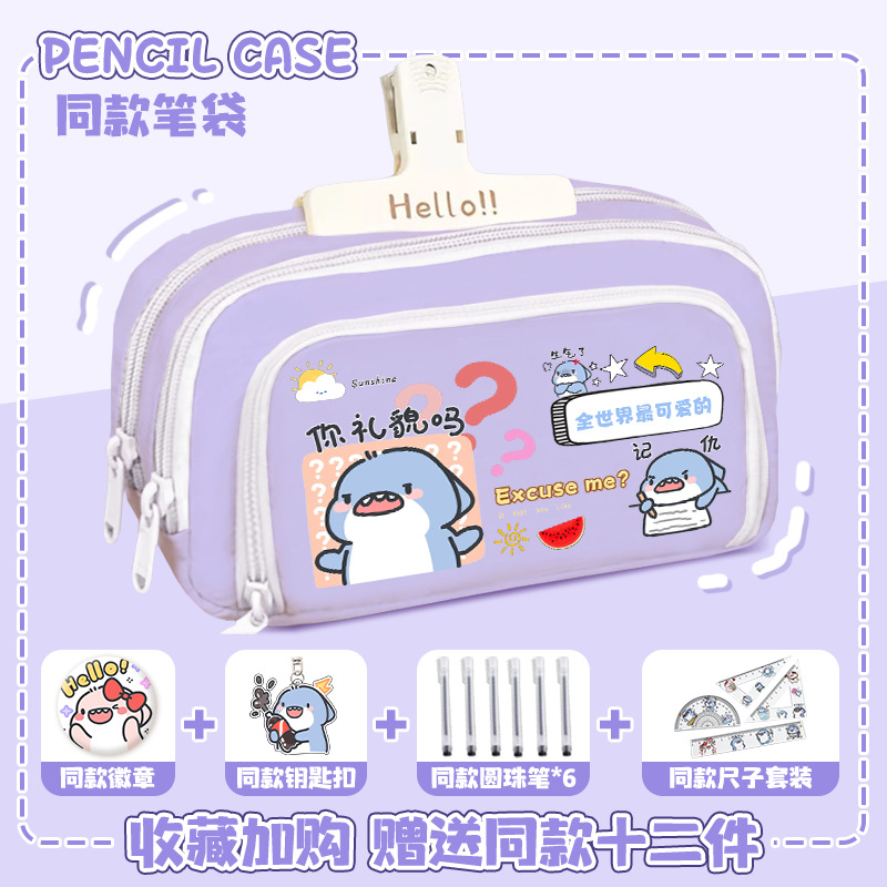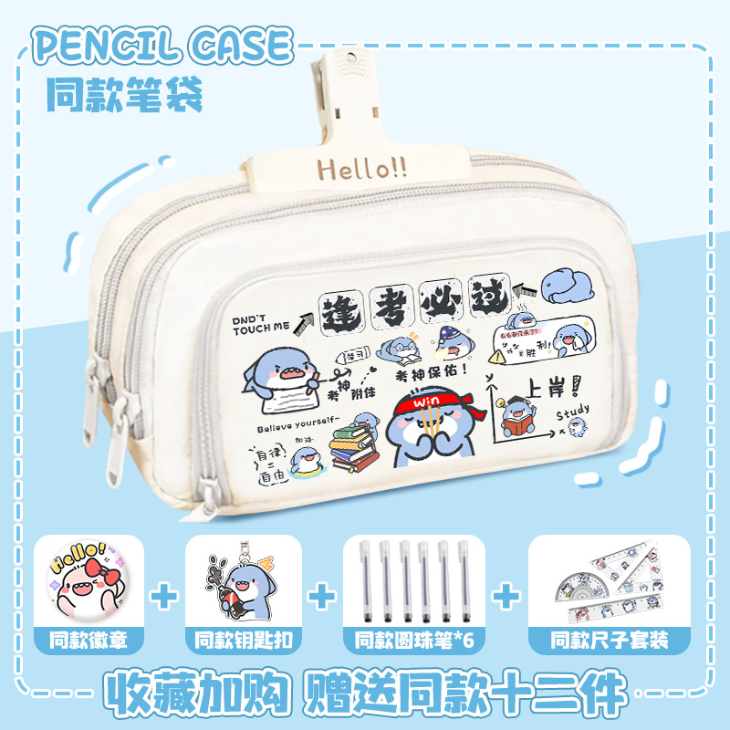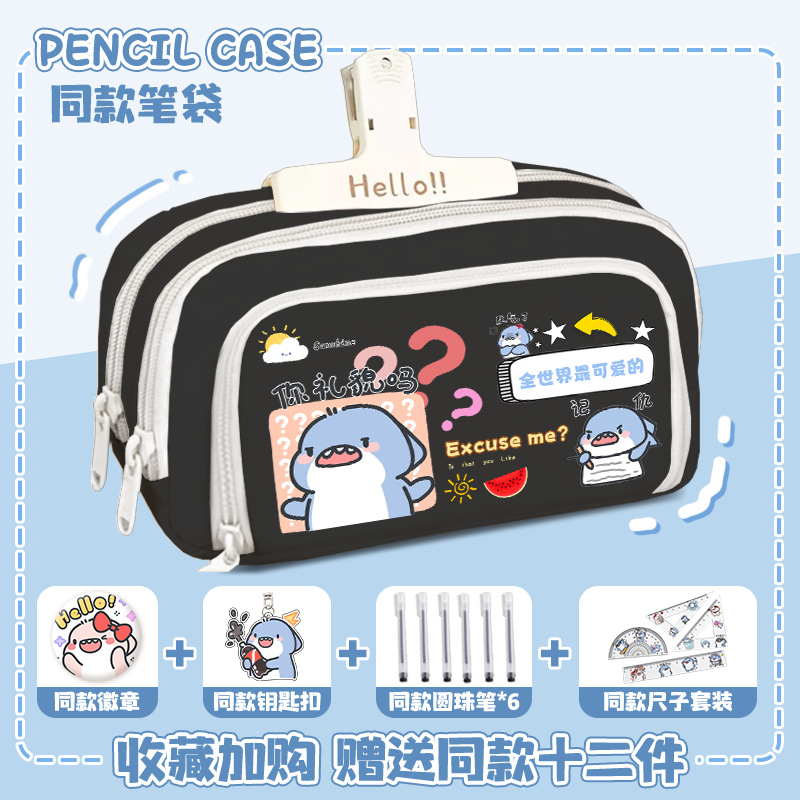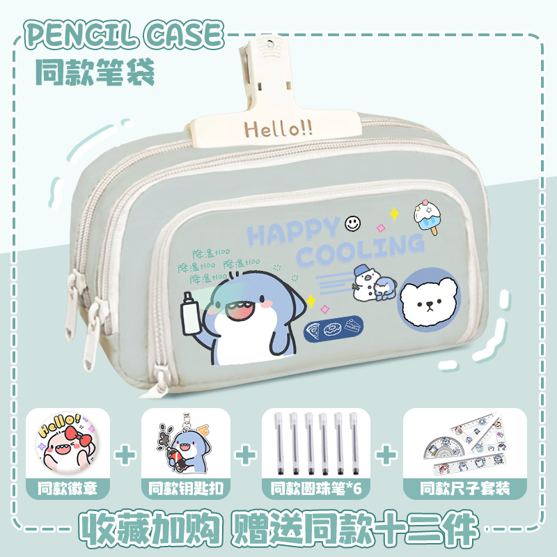 뚱뚱한 상어 만화 2 차 요소 연필 케이스 초등학교 중학교 학생 어린이 문구 상자 6 학년 합동 주변 소년 소녀