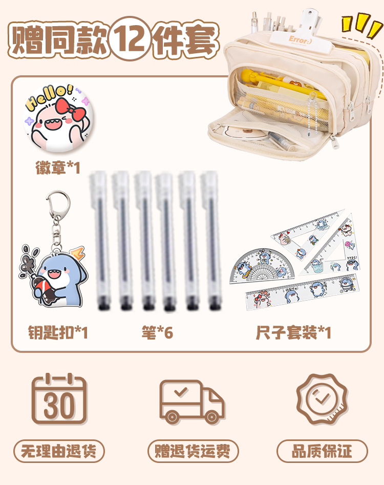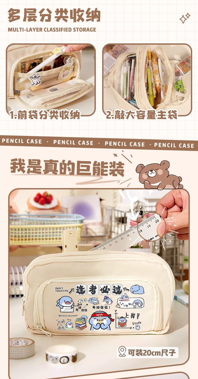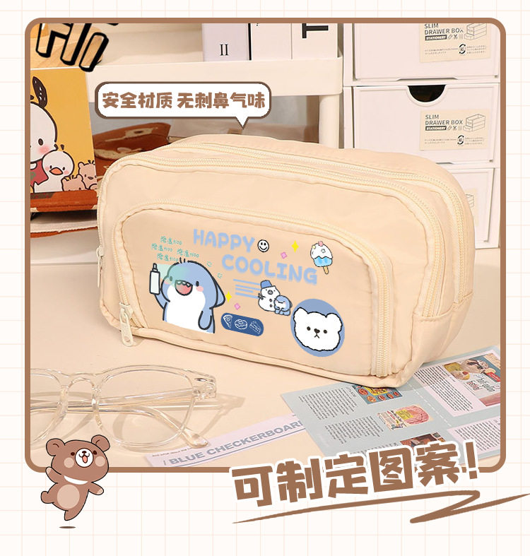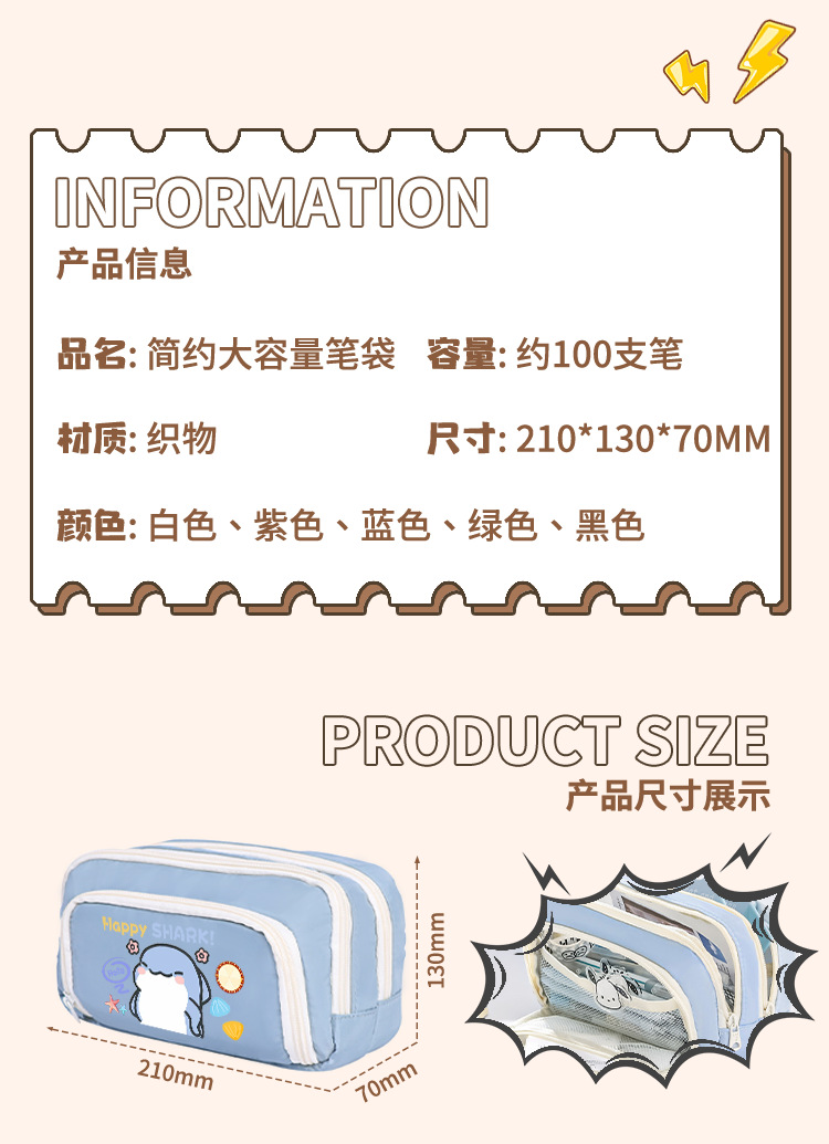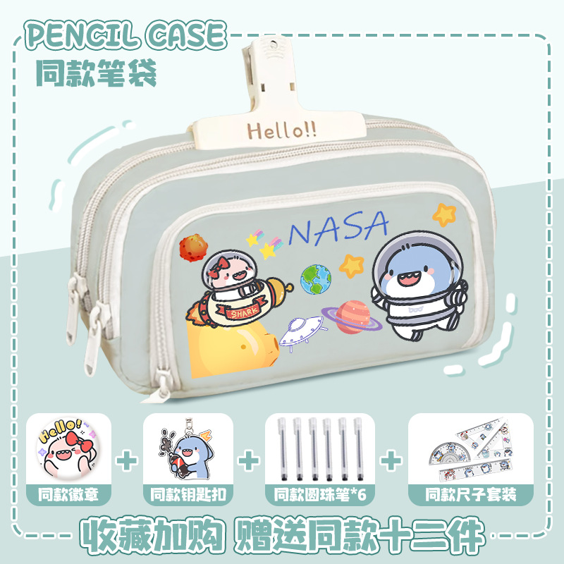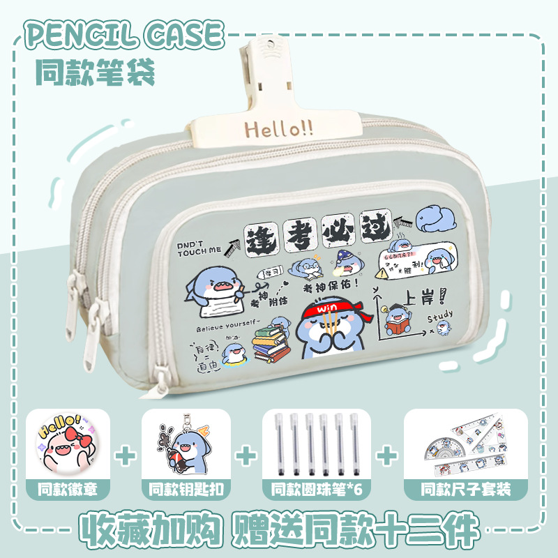 뚱뚱한 상어 만화 2 차 요소 연필 케이스 초등학교 중학교 학생 어린이 문구 상자 6 학년 합동 주변 소년 소녀