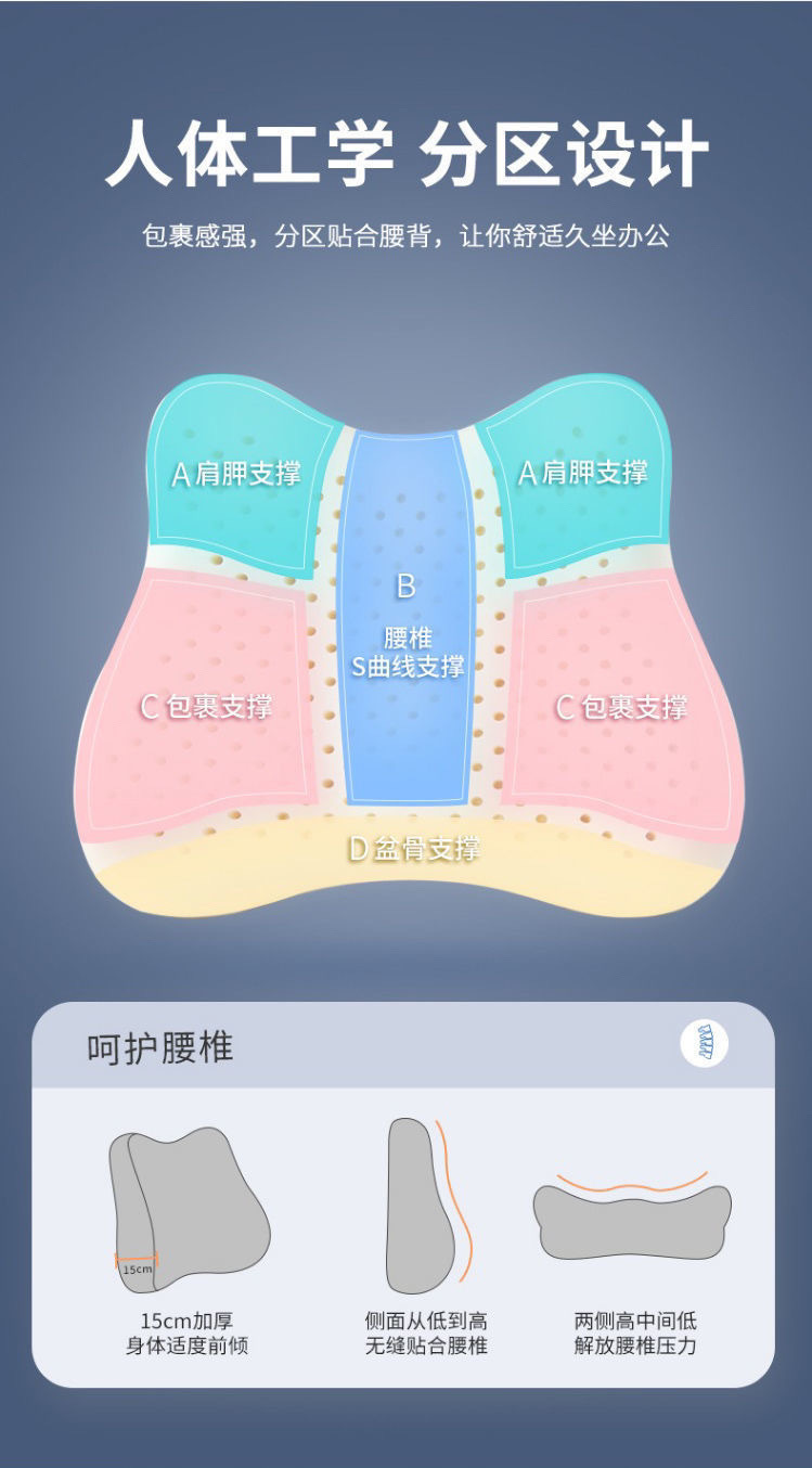 腰靠办公室座椅靠垫久坐乳胶坐垫腰枕腰部支撑靠背垫腰托护腰腰垫