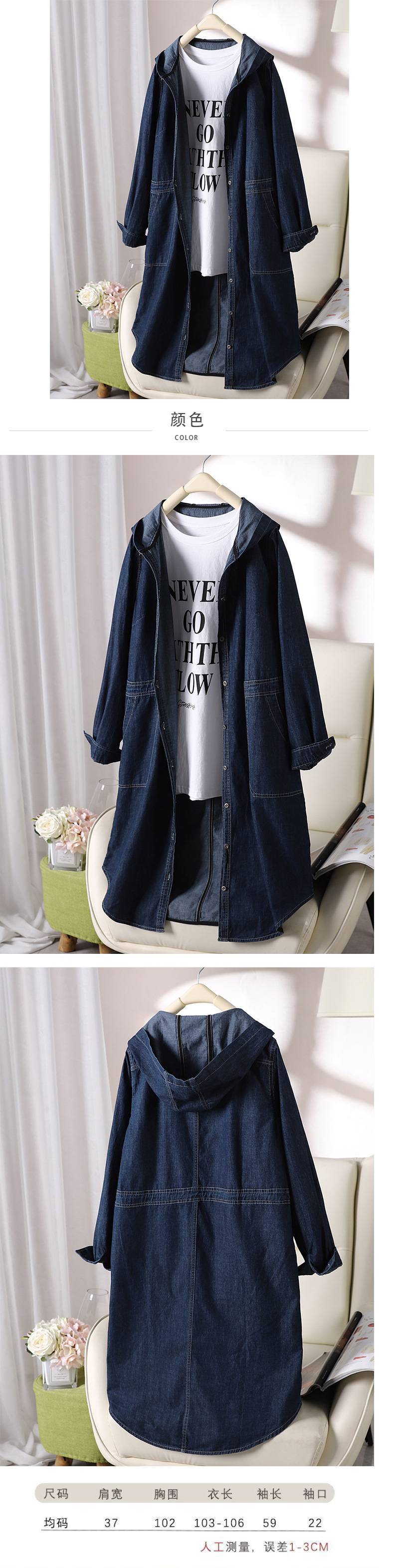 봄 새로운 중간 길이 데님 카디건 재킷 여성용 긴팔 단색 후드 대형 포켓 캐주얼 탑