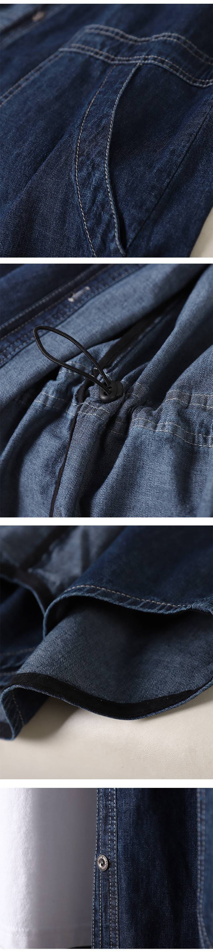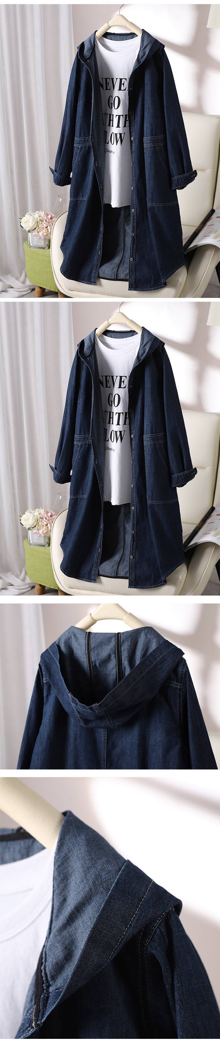 봄 새로운 중간 길이 데님 카디건 재킷 여성용 긴팔 단색 후드 대형 포켓 캐주얼 탑스토어 가기