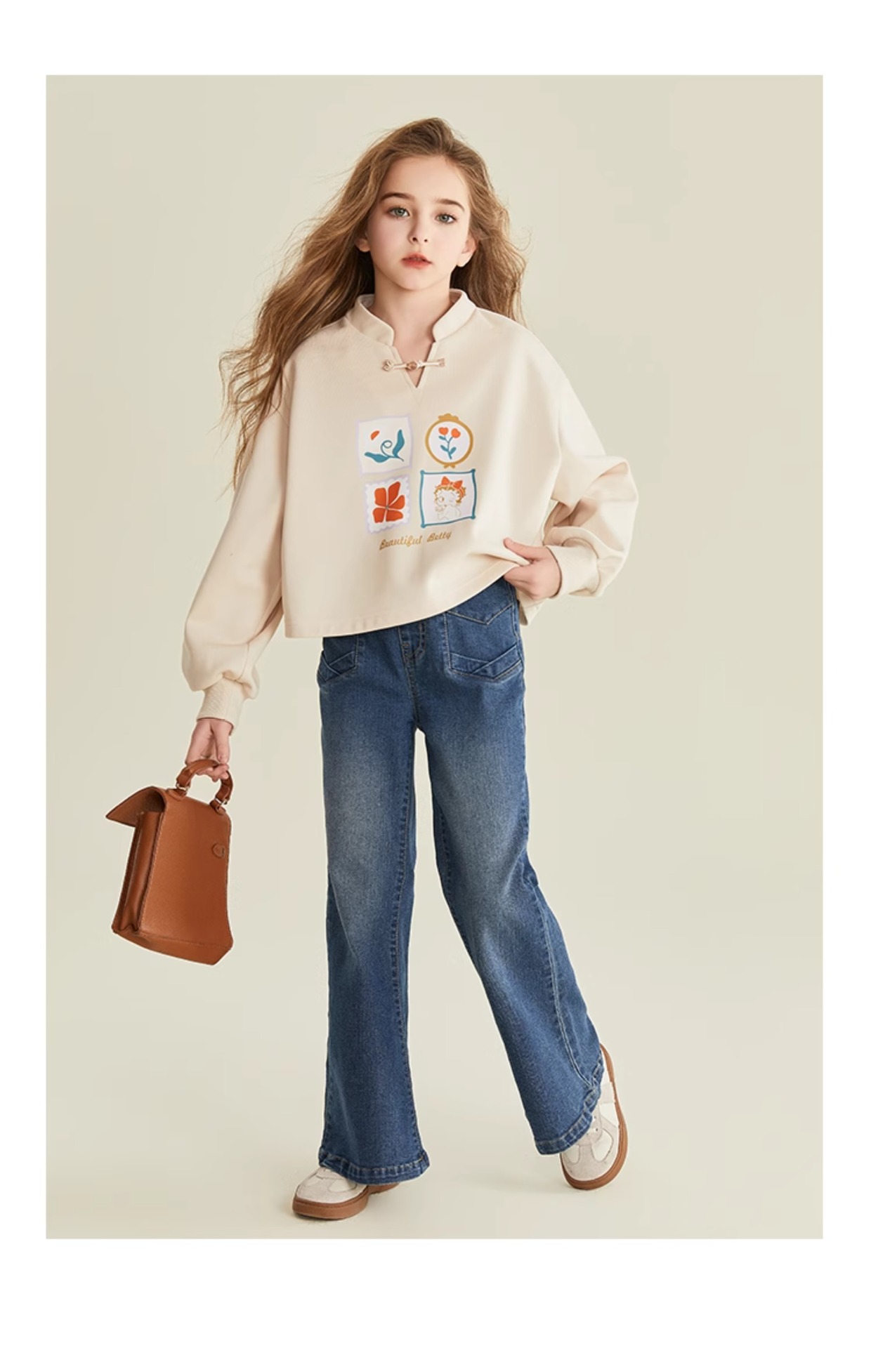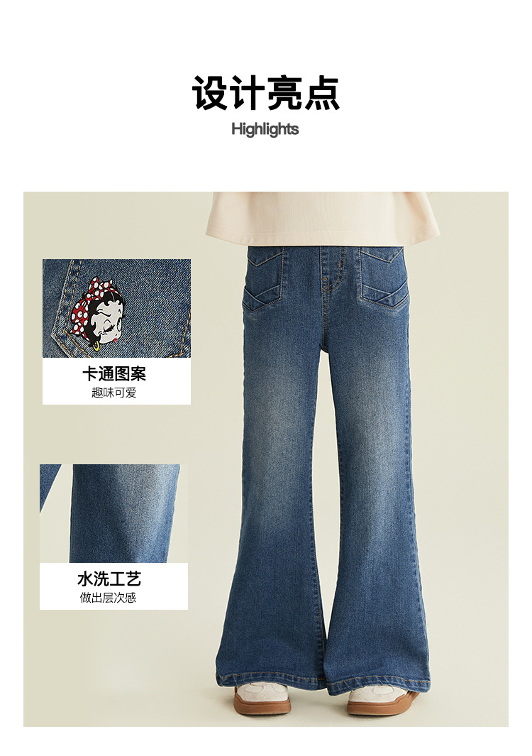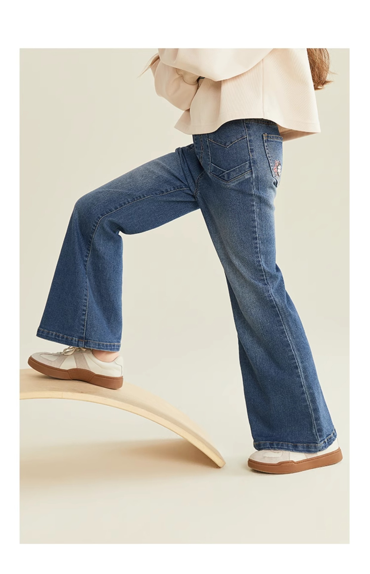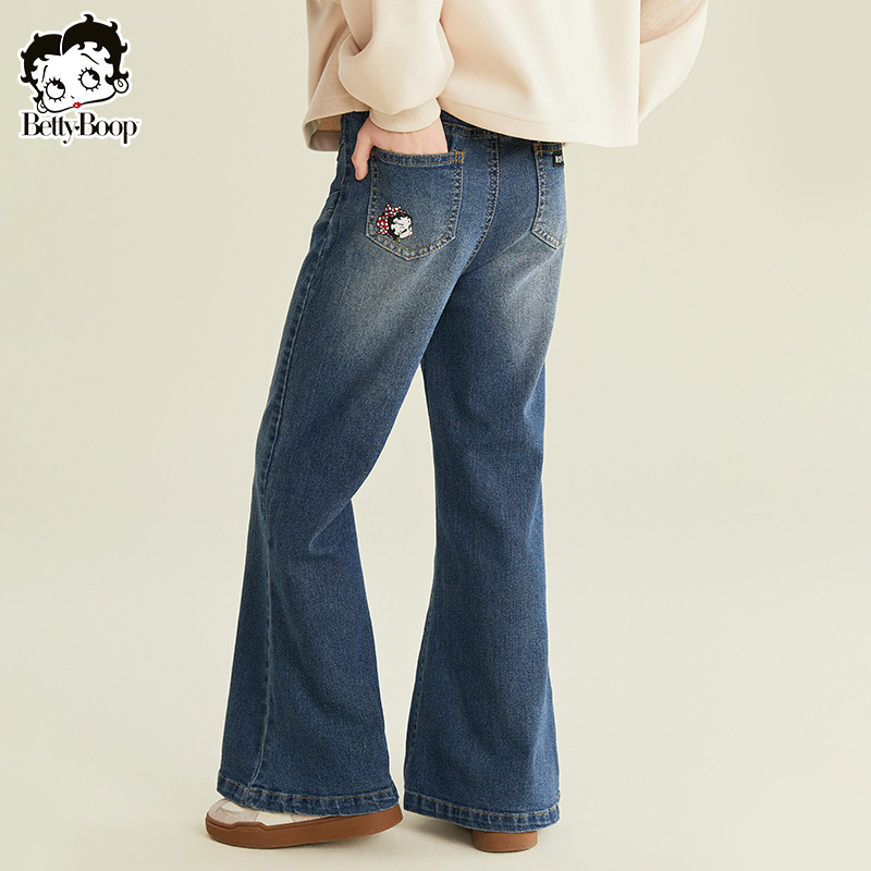 베티 아동복 소녀 봄과 가을 슬림 캐주얼 데님 바지 2025 새로운 어린이 대형 어린이 느슨한 바지스토어 가기